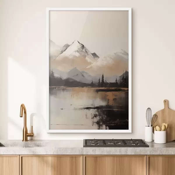 Poster Havas, texturált hegyek néhány fával egy tó előtt Nr f45951