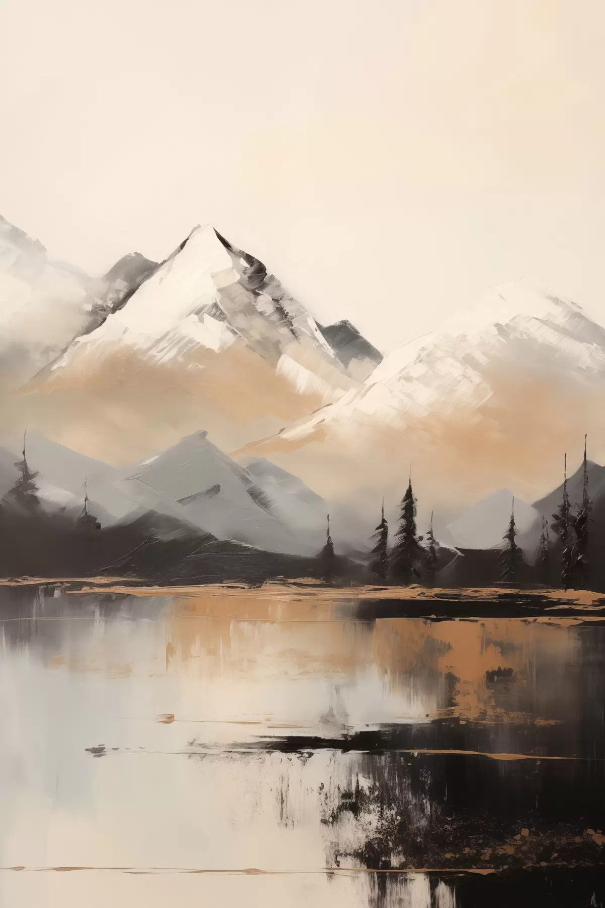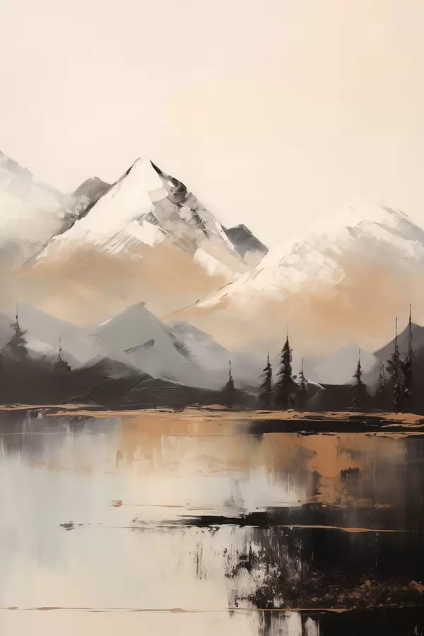 Poster Havas, texturált hegyek néhány fával egy tó előtt Nr f45951