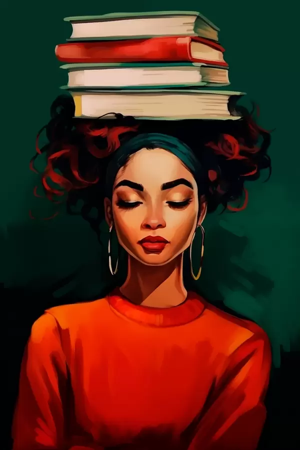 Plakát a sziklán Nő könyvekkel a fején f45952