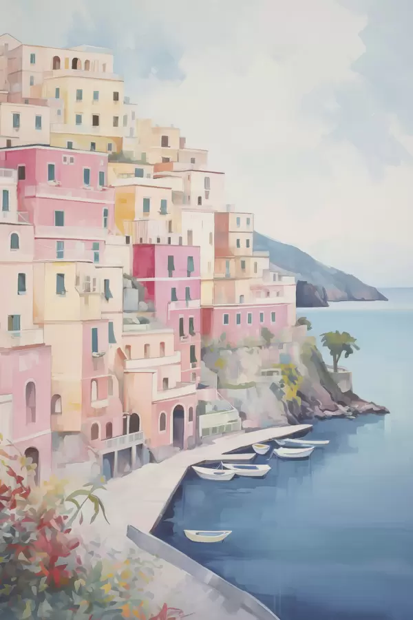 Plakát a sziklán Házak a tengerparti öbölnél f46066