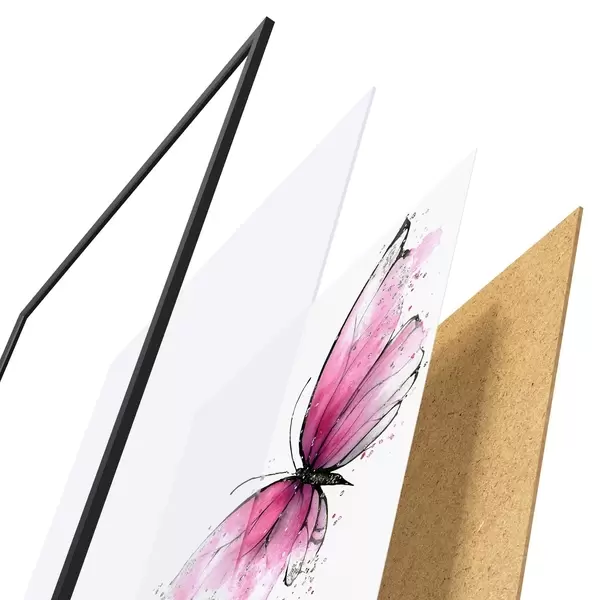 A poszter keretből, plexiből, nyomtatott képből és forgácslap hátlapból áll. A poszter a hátoldalon található rögzítőknek köszönhetően azonnal felakasztható a falra.