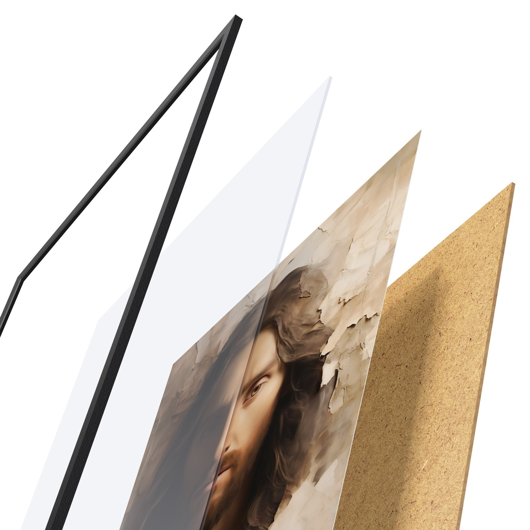 A poszter keretből, plexiből, nyomtatott képből és forgácslap hátlapból áll. A poszter a hátoldalon található rögzítőknek köszönhetően azonnal felakasztható a falra.