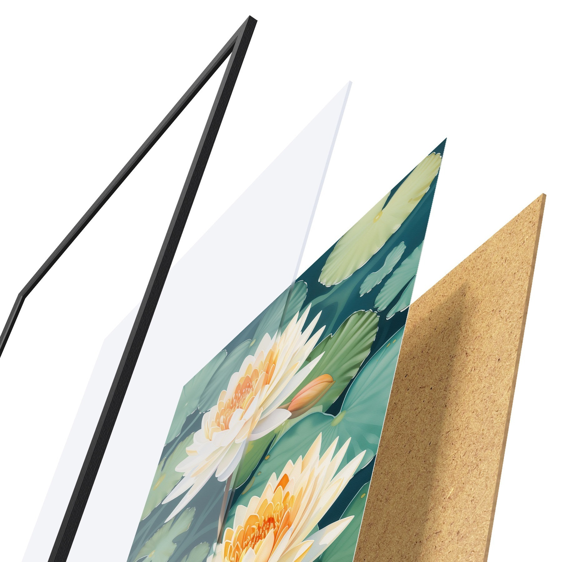 A poszter keretből, plexiből, nyomtatott képből és forgácslap hátlapból áll. A poszter a hátoldalon található rögzítőknek köszönhetően azonnal felakasztható a falra.