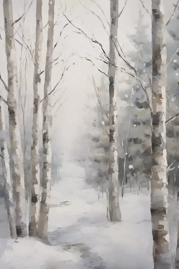 Plakát a sziklán Nyírfák egy téli erdőben f46129