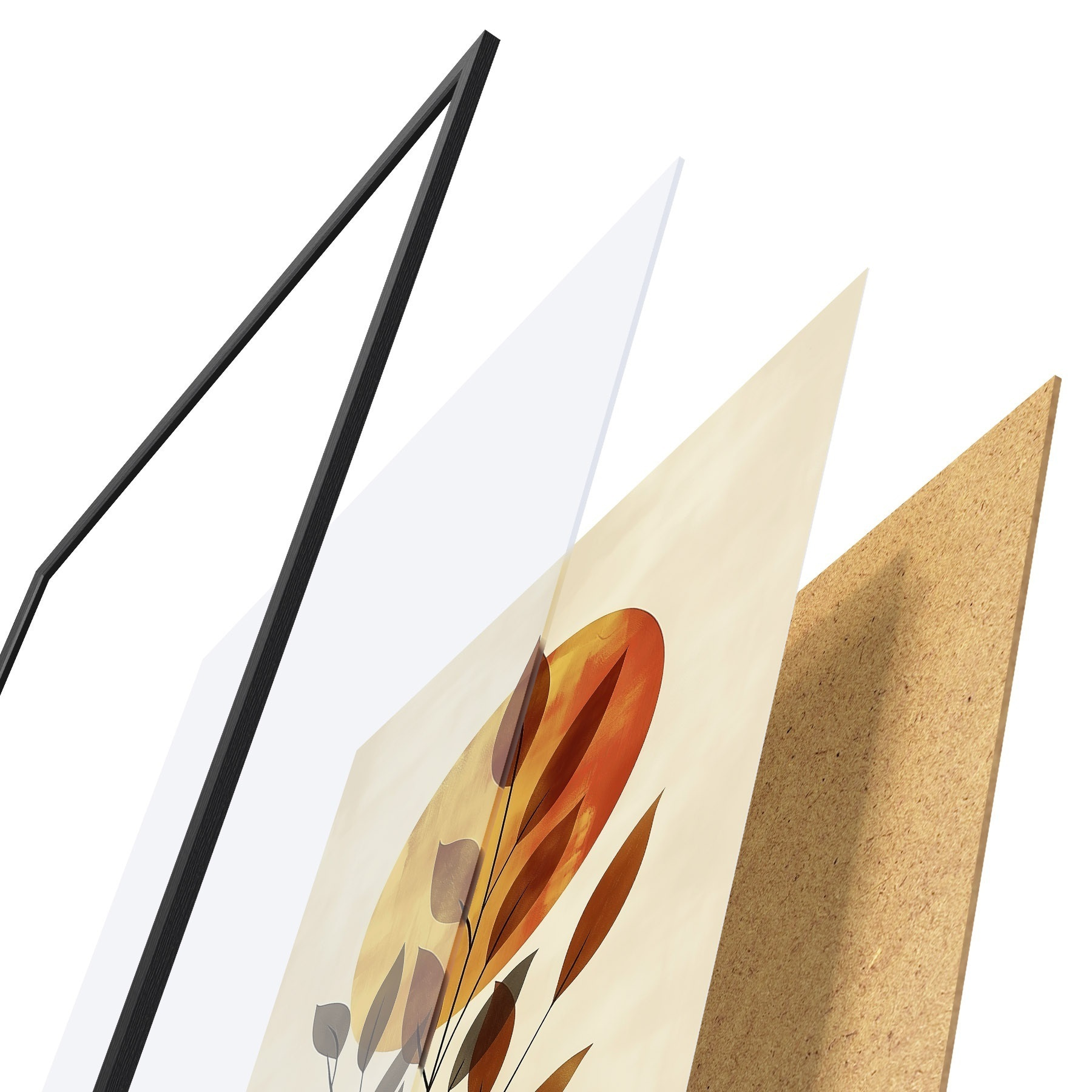 A poszter keretből, plexiből, nyomtatott képből és forgácslap hátlapból áll. A poszter a hátoldalon található rögzítőknek köszönhetően azonnal felakasztható a falra.