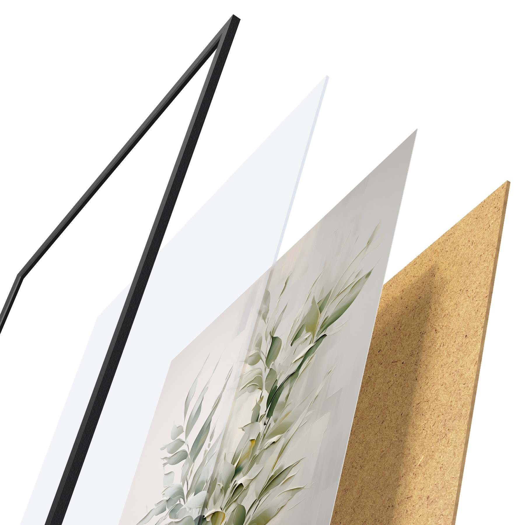 A poszter keretből, plexiből, nyomtatott képből és forgácslap hátlapból áll. A poszter a hátoldalon található rögzítőknek köszönhetően azonnal felakasztható a falra.