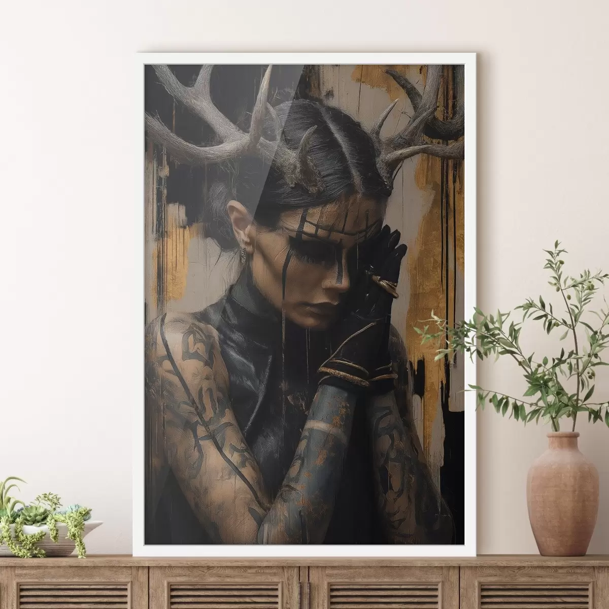 Poster Sötét megjelenésű, szarvakkal rendelkező nő, fekete arcvonásokkal Nr f46144