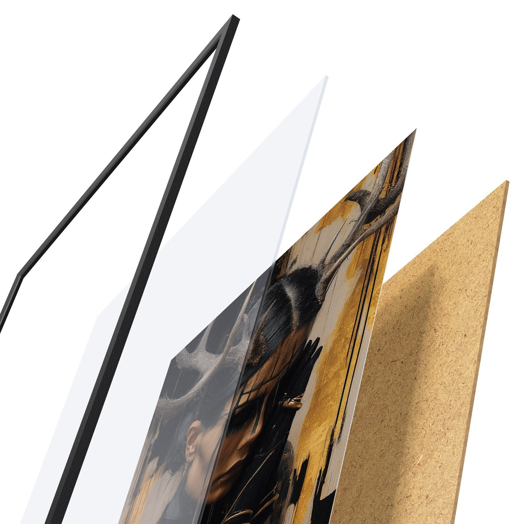 A poszter keretből, plexiből, nyomtatott képből és forgácslap hátlapból áll. A poszter a hátoldalon található rögzítőknek köszönhetően azonnal felakasztható a falra.