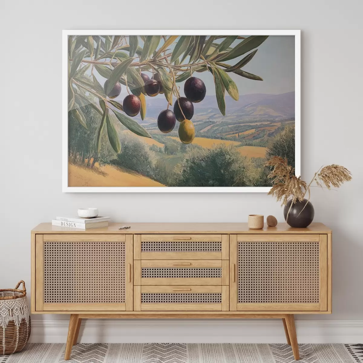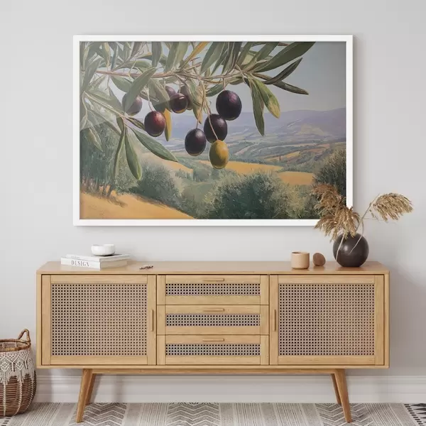 Poster Olajág sötét gyümölcsökkel nyári táj előtt Nr f46150