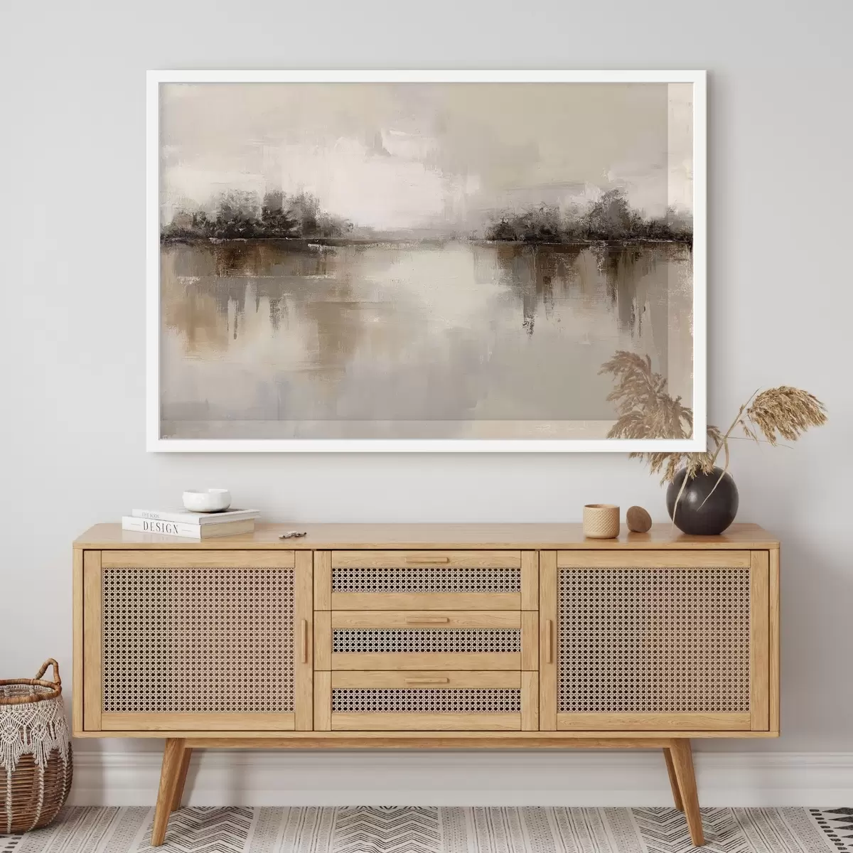 Poster Lágy táj, tóval, meleg bézs-szürke árnyalatokban Nr f46158