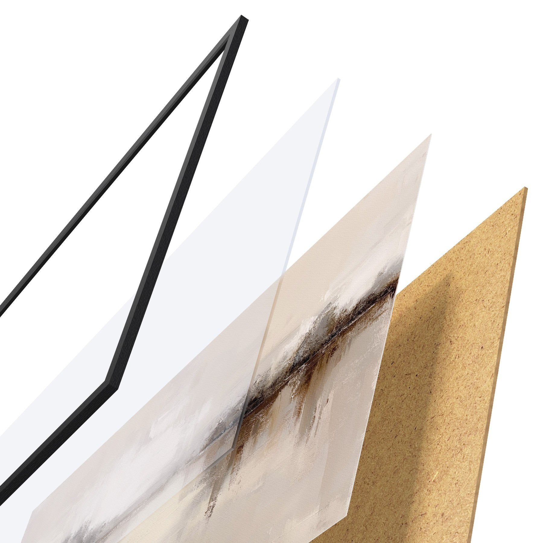 A poszter keretből, plexiből, nyomtatott képből és forgácslap hátlapból áll. A poszter a hátoldalon található rögzítőknek köszönhetően azonnal felakasztható a falra.