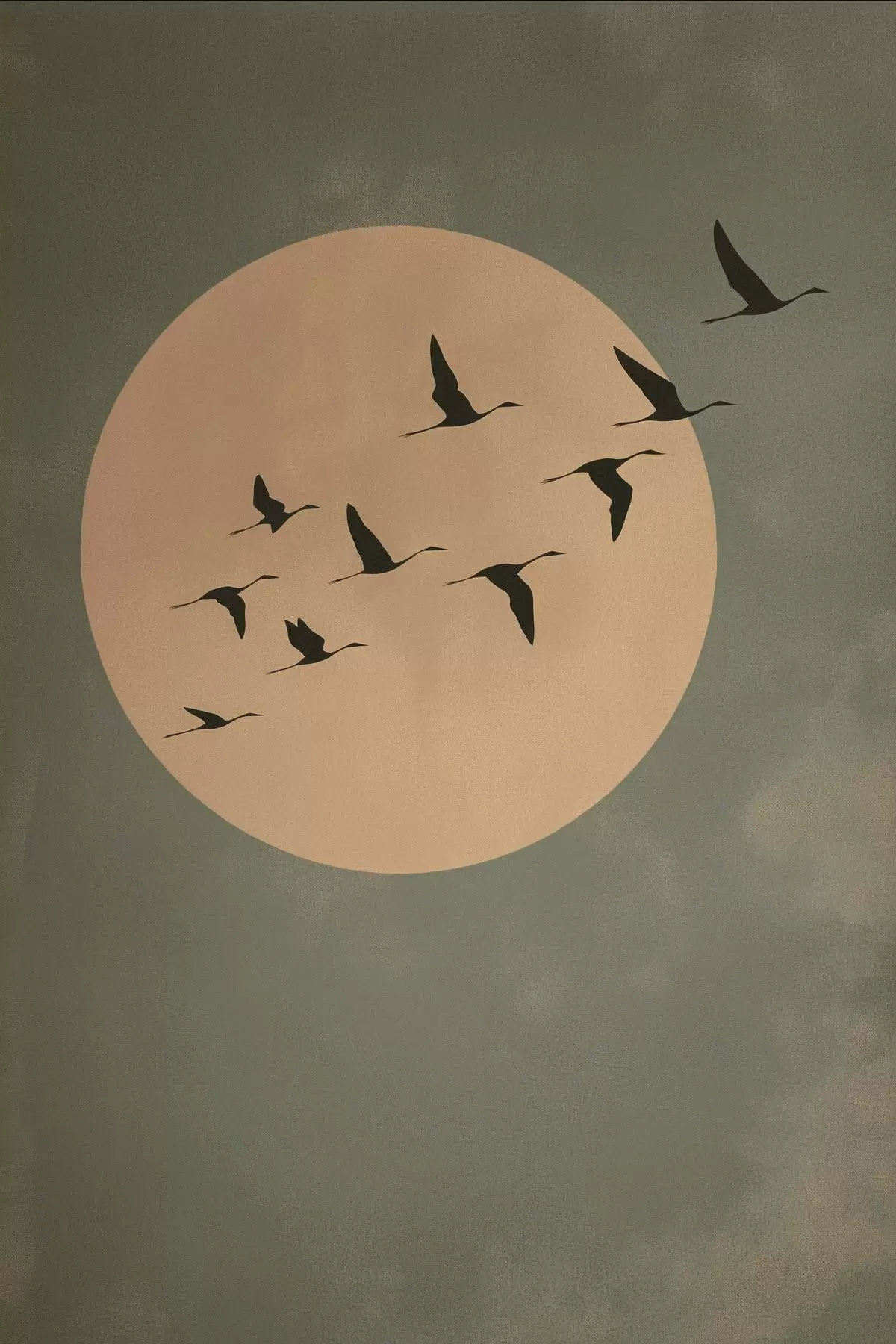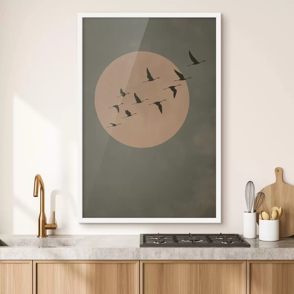 Poster Madárraj repül a nagy, meleg hold előtt Nr f46162