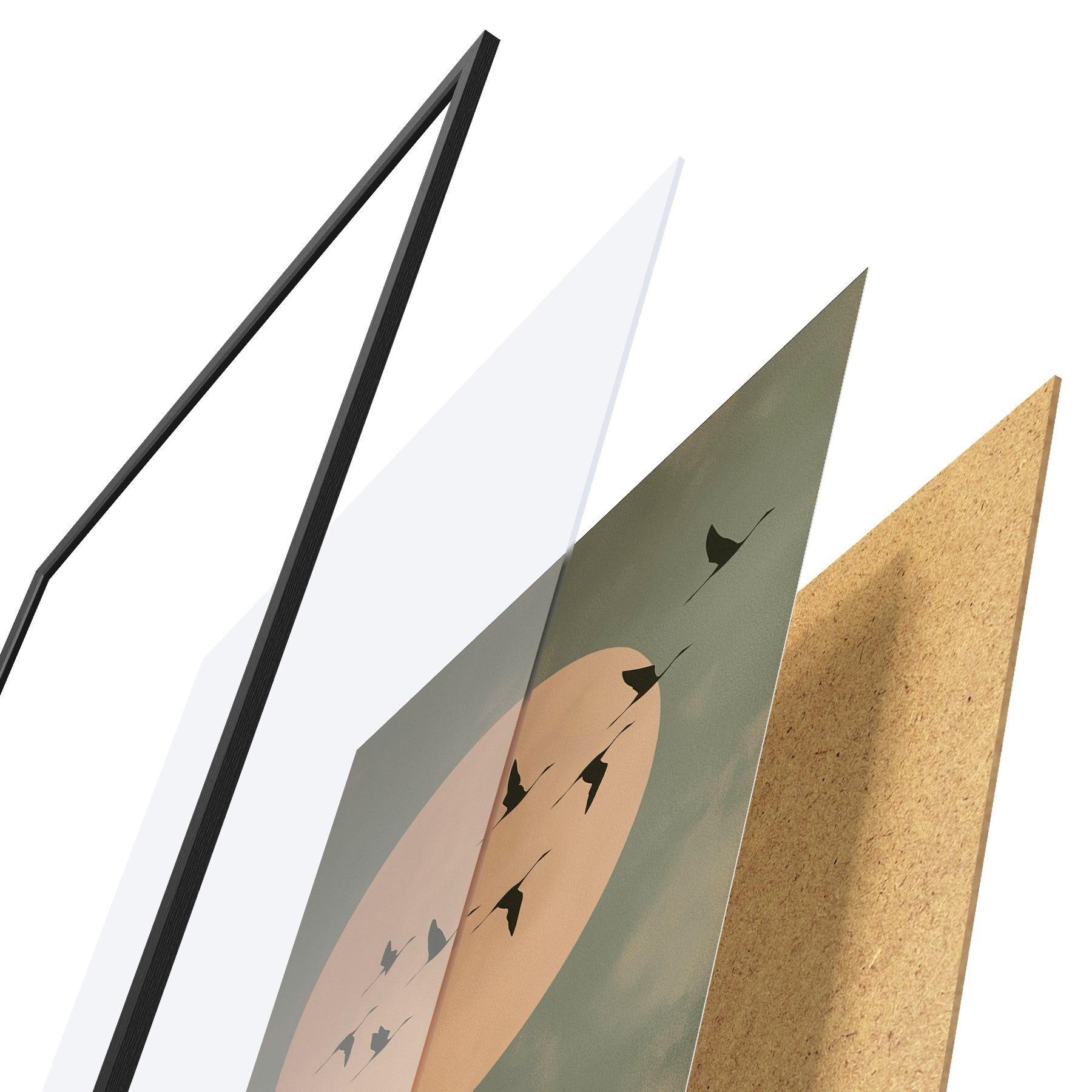 A poszter keretből, plexiből, nyomtatott képből és forgácslap hátlapból áll. A poszter a hátoldalon található rögzítőknek köszönhetően azonnal felakasztható a falra.