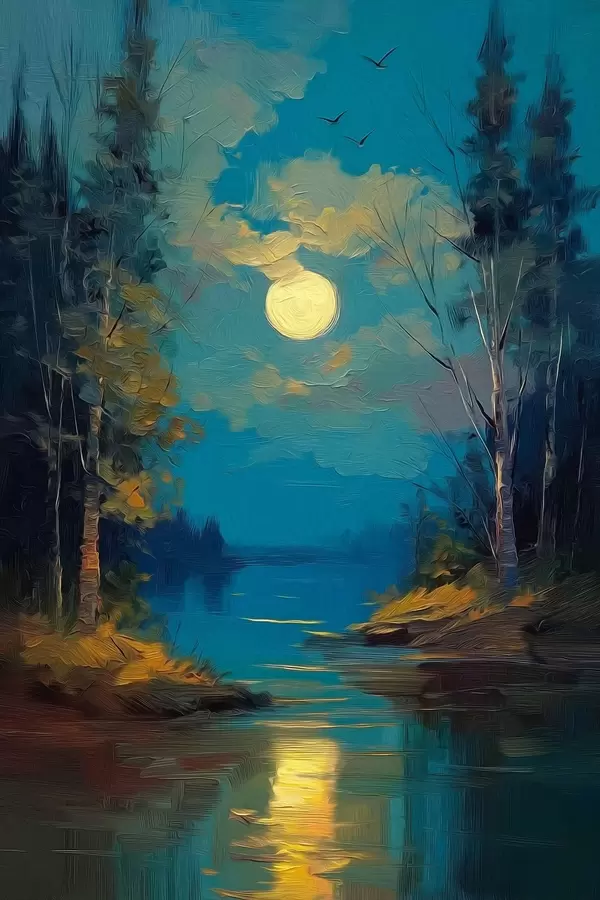 Poster Holdfény a fenyők között csendes folyón Nr f46164