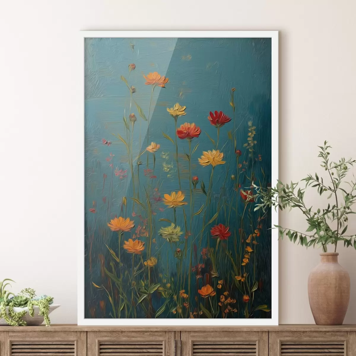 Poster Vadvirágok mély türkizkék háttér előtt Nr f46169