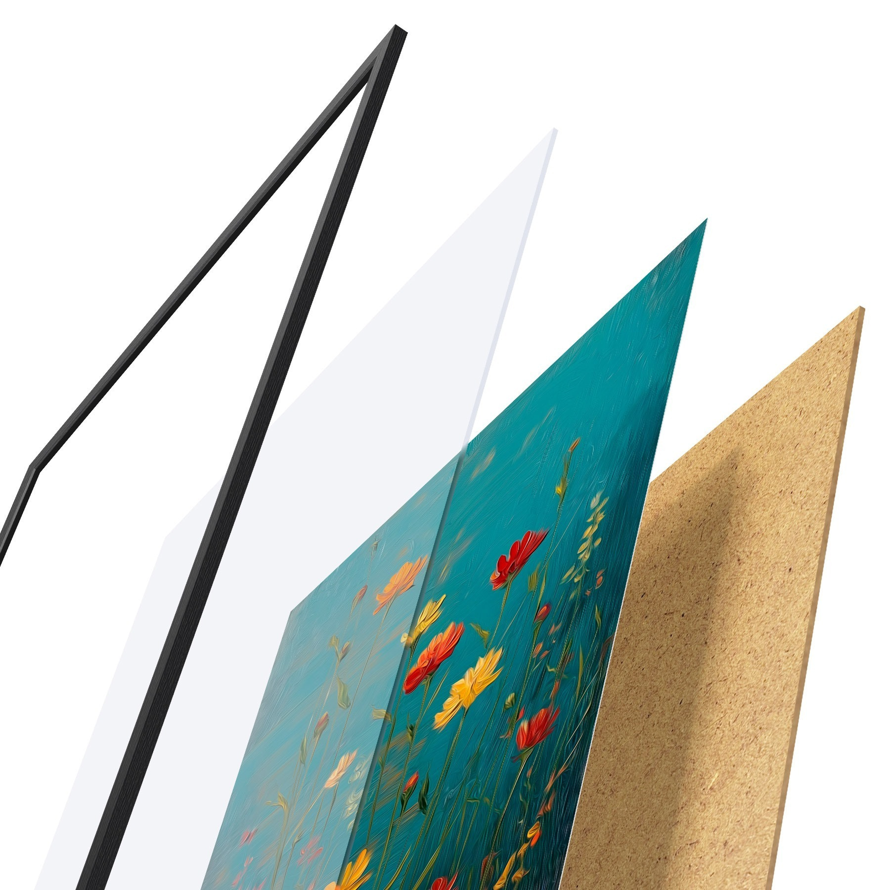 A poszter keretből, plexiből, nyomtatott képből és forgácslap hátlapból áll. A poszter a hátoldalon található rögzítőknek köszönhetően azonnal felakasztható a falra.