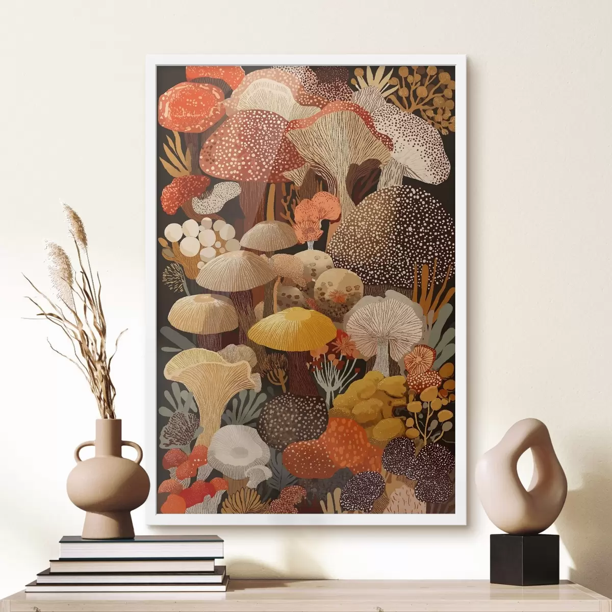 Poster Különböző erdei gombák kompozíciója meleg tónusokban Nr f46170