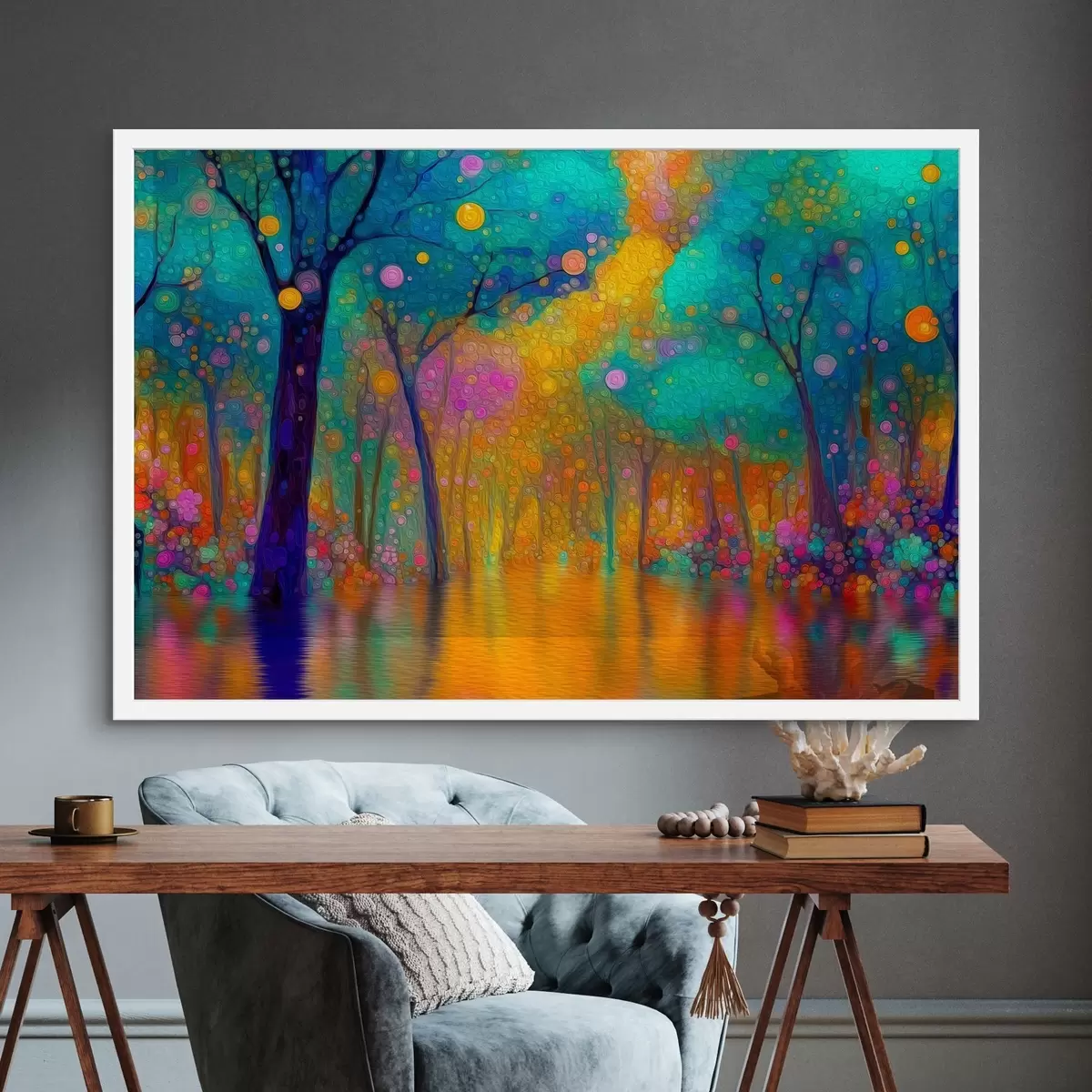 Poster Élénk fantáziaerdő vízben tükröződve Nr f46171