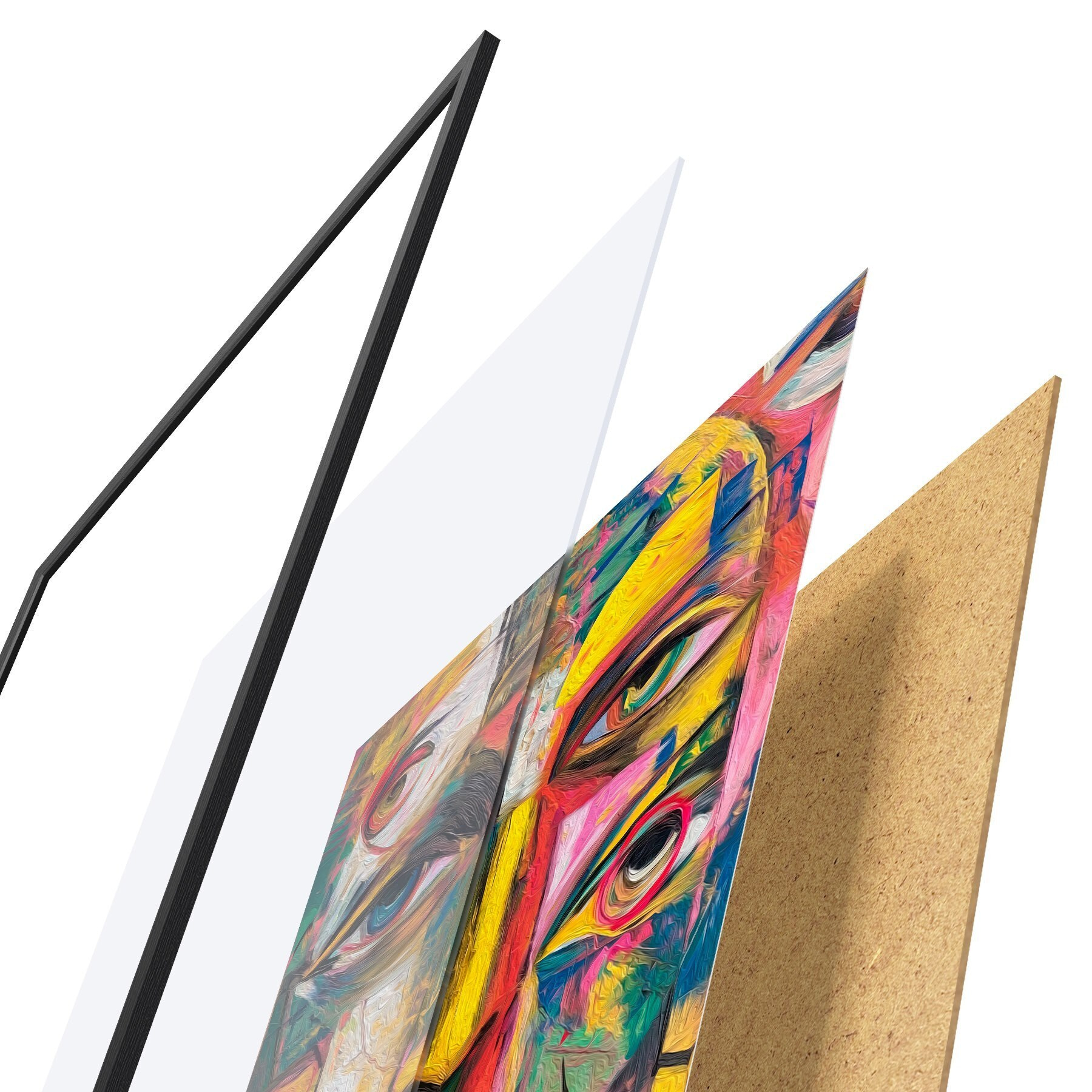 A poszter keretből, plexiből, nyomtatott képből és forgácslap hátlapból áll. A poszter a hátoldalon található rögzítőknek köszönhetően azonnal felakasztható a falra.