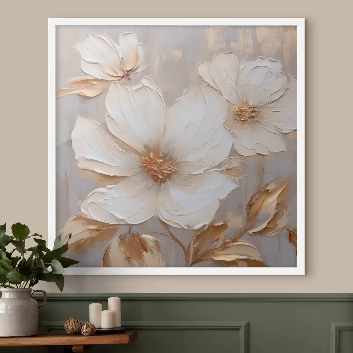 Poster Nagy, texturált virágok meleg színpalettával, ecsetvonásokkal Nr f46176