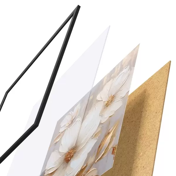 A poszter keretből, plexiből, nyomtatott képből és forgácslap hátlapból áll. A poszter a hátoldalon található rögzítőknek köszönhetően azonnal felakasztható a falra.
