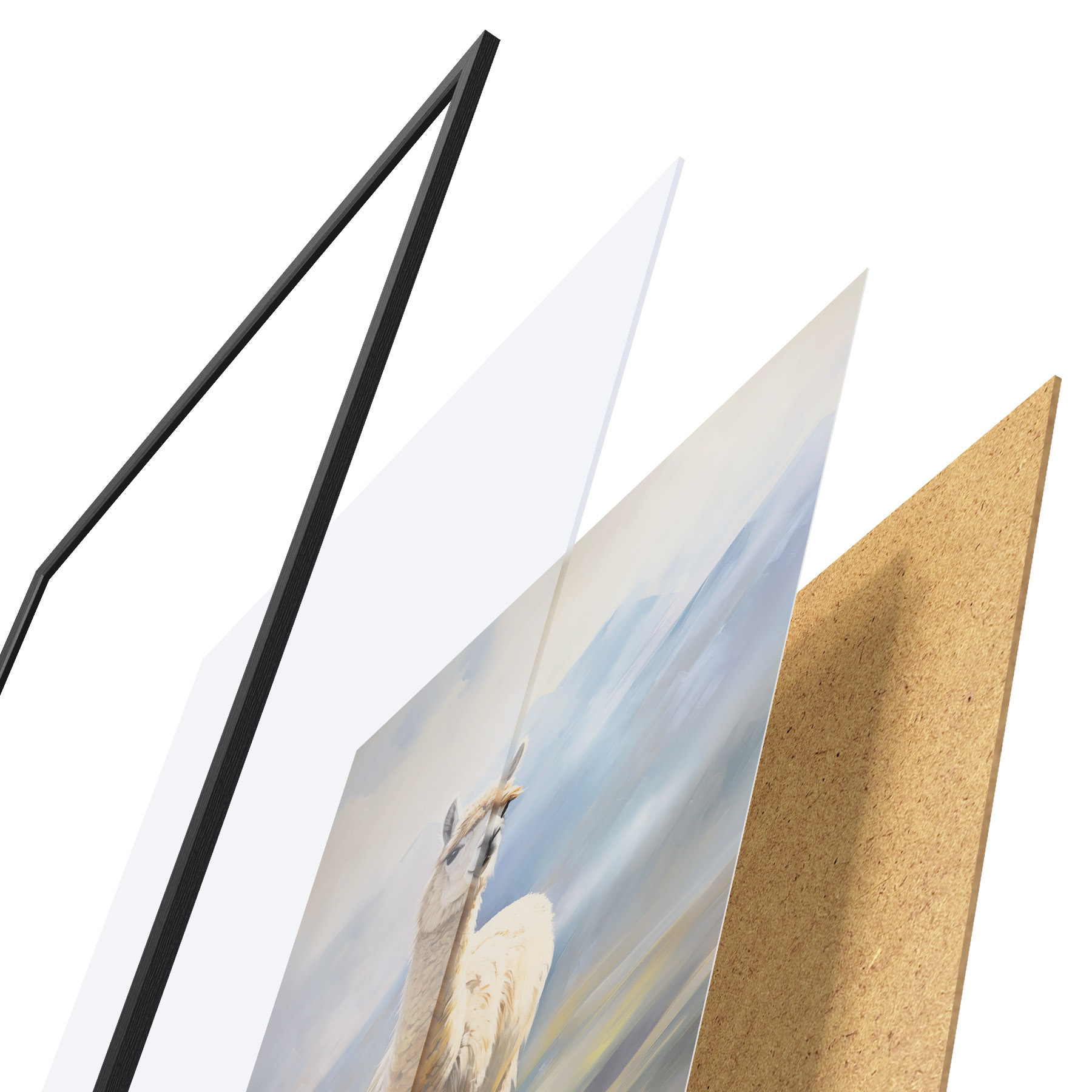 A poszter keretből, plexiből, nyomtatott képből és forgácslap hátlapból áll. A poszter a hátoldalon található rögzítőknek köszönhetően azonnal felakasztható a falra.