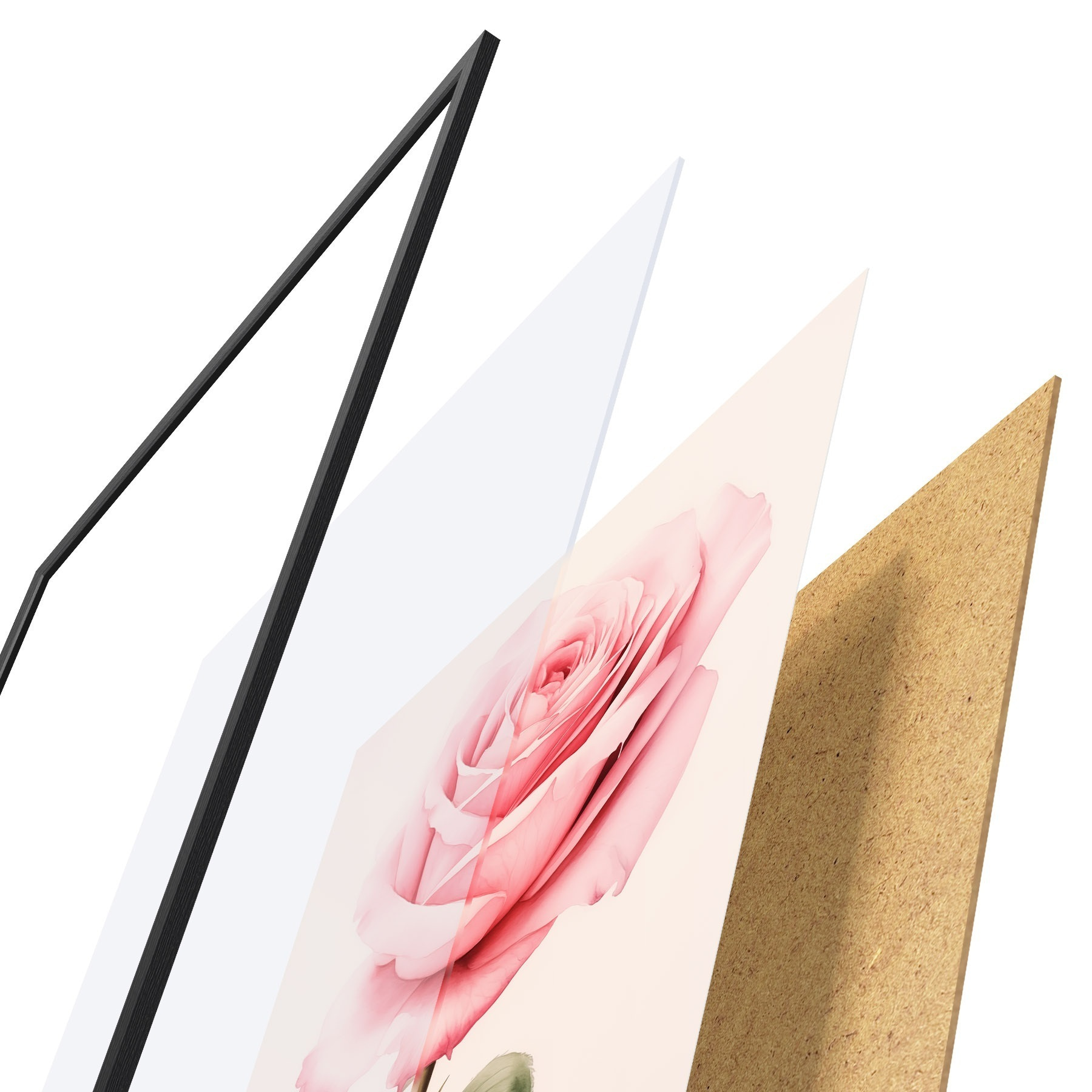 A poszter keretből, plexiből, nyomtatott képből és forgácslap hátlapból áll. A poszter a hátoldalon található rögzítőknek köszönhetően azonnal felakasztható a falra.
