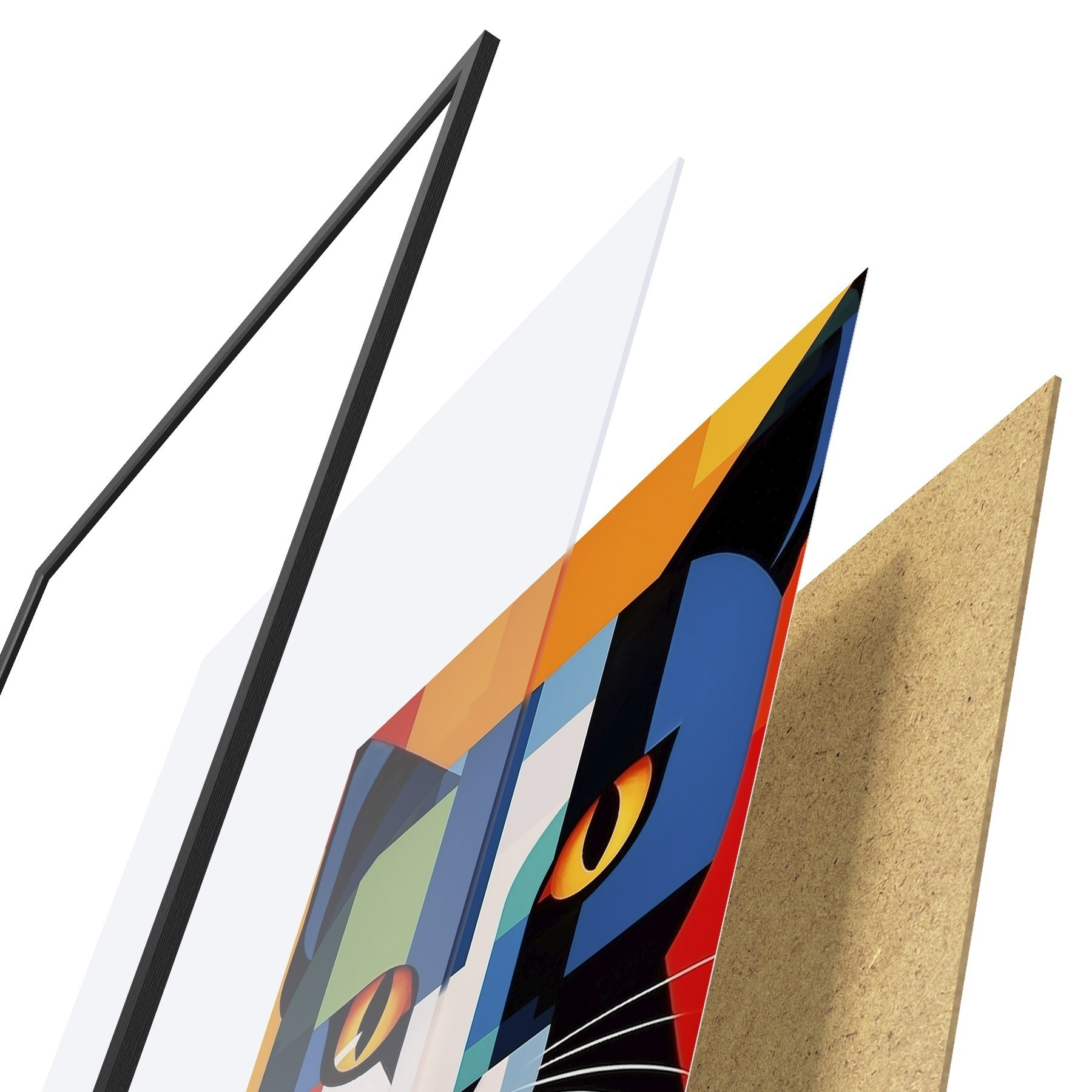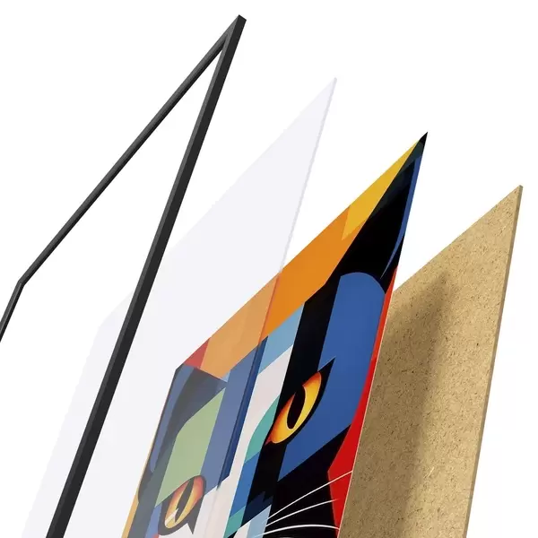 A poszter keretből, plexiből, nyomtatott képből és forgácslap hátlapból áll. A poszter a hátoldalon található rögzítőknek köszönhetően azonnal felakasztható a falra.