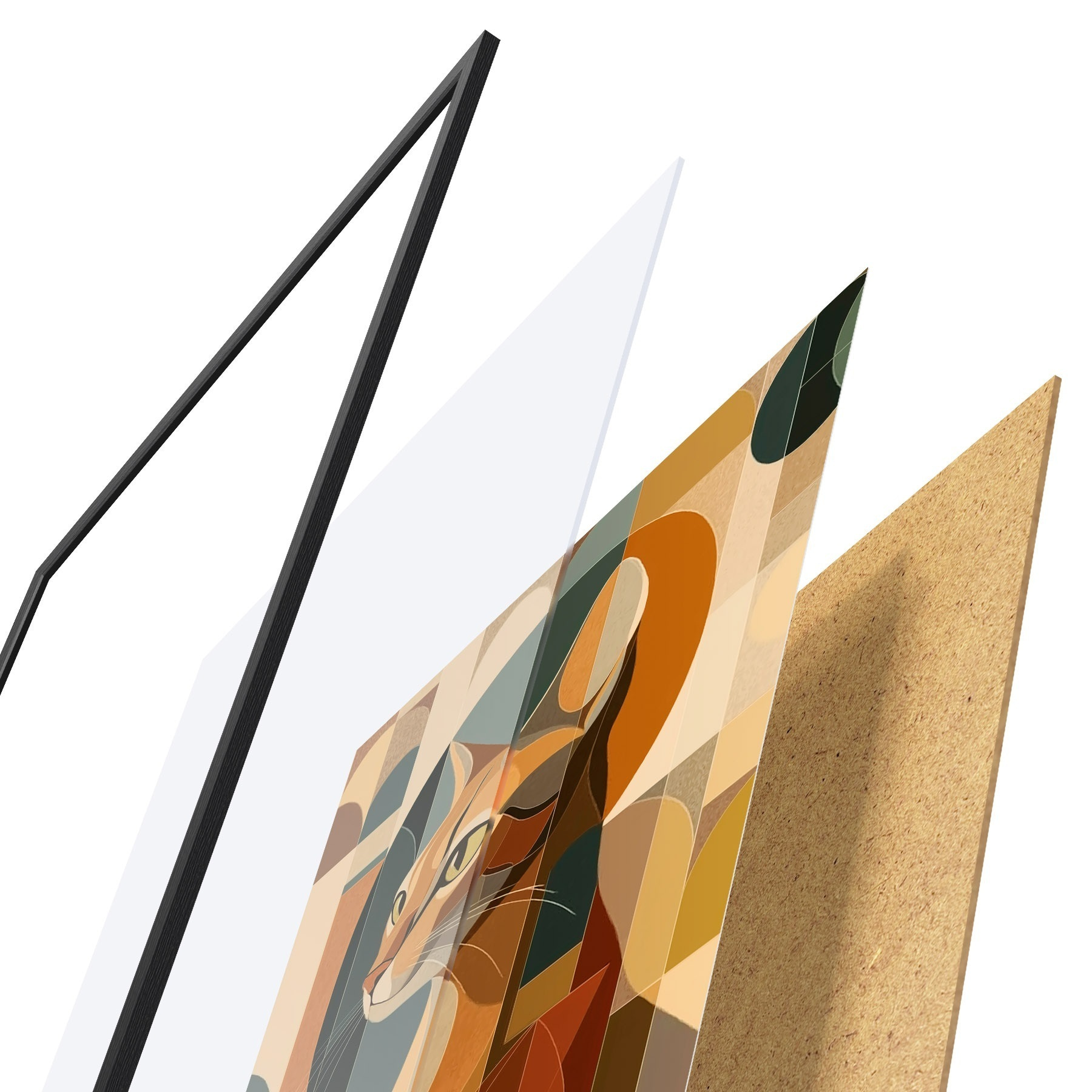 A poszter keretből, plexiből, nyomtatott képből és forgácslap hátlapból áll. A poszter a hátoldalon található rögzítőknek köszönhetően azonnal felakasztható a falra.