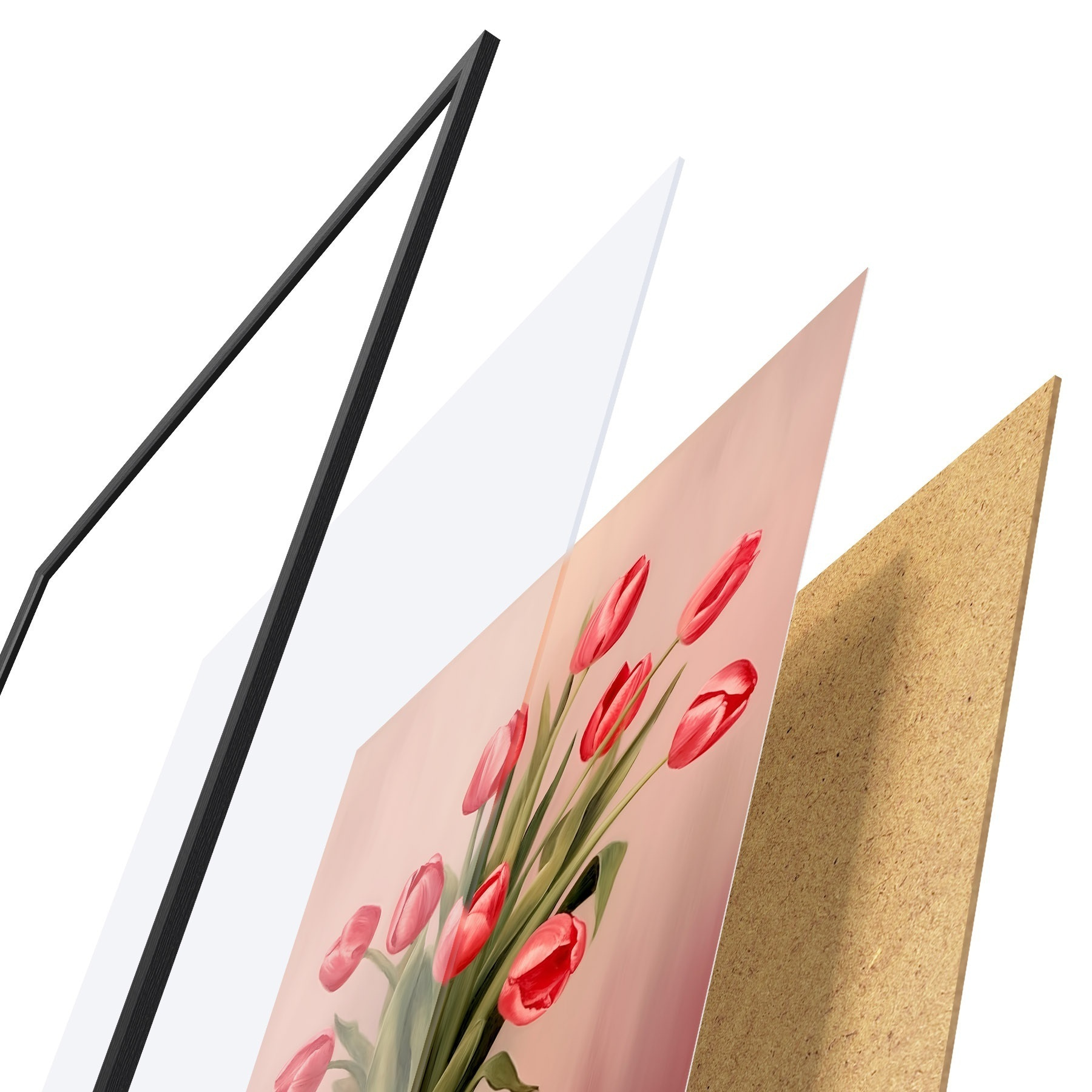 A poszter keretből, plexiből, nyomtatott képből és forgácslap hátlapból áll. A poszter a hátoldalon található rögzítőknek köszönhetően azonnal felakasztható a falra.