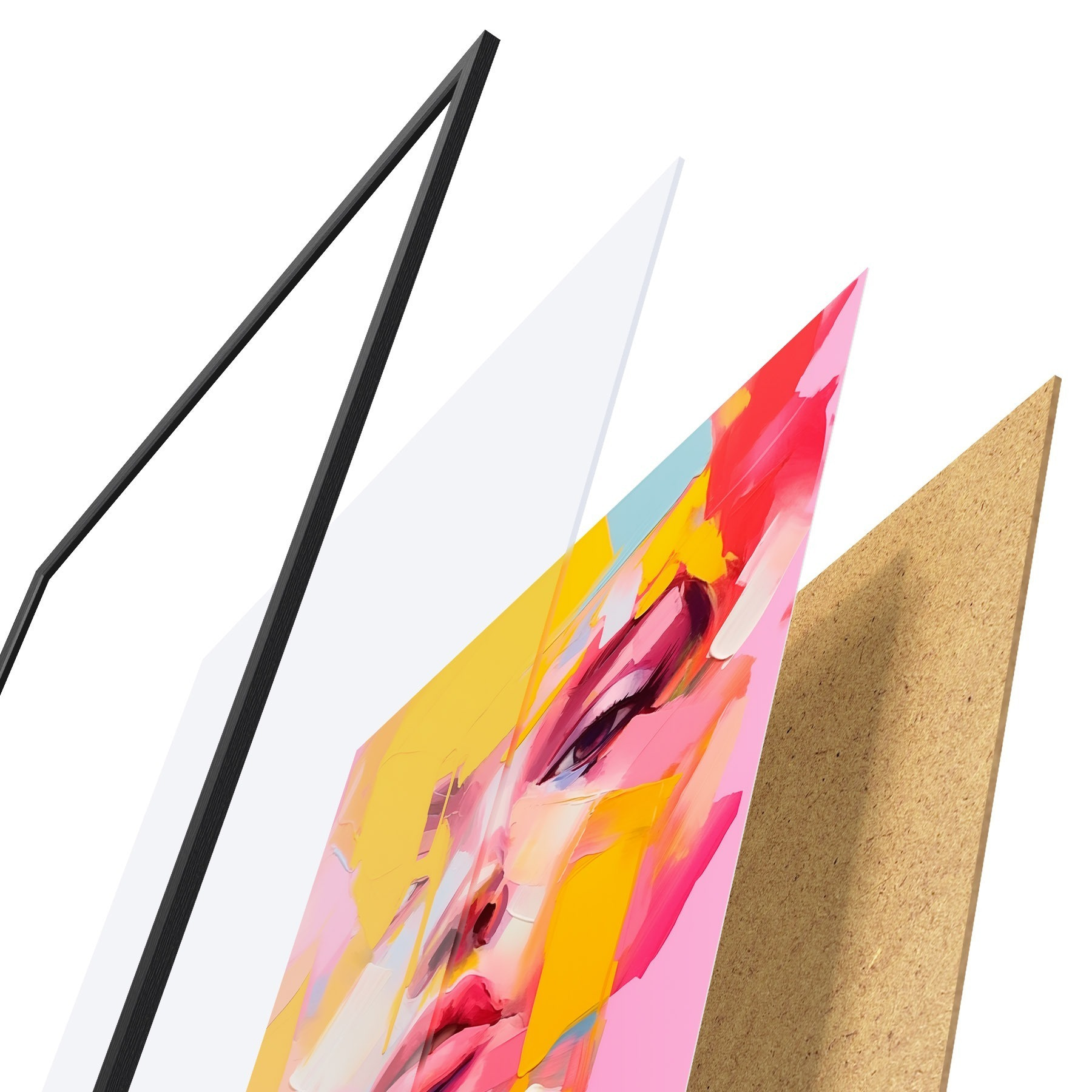 A poszter keretből, plexiből, nyomtatott képből és forgácslap hátlapból áll. A poszter a hátoldalon található rögzítőknek köszönhetően azonnal felakasztható a falra.