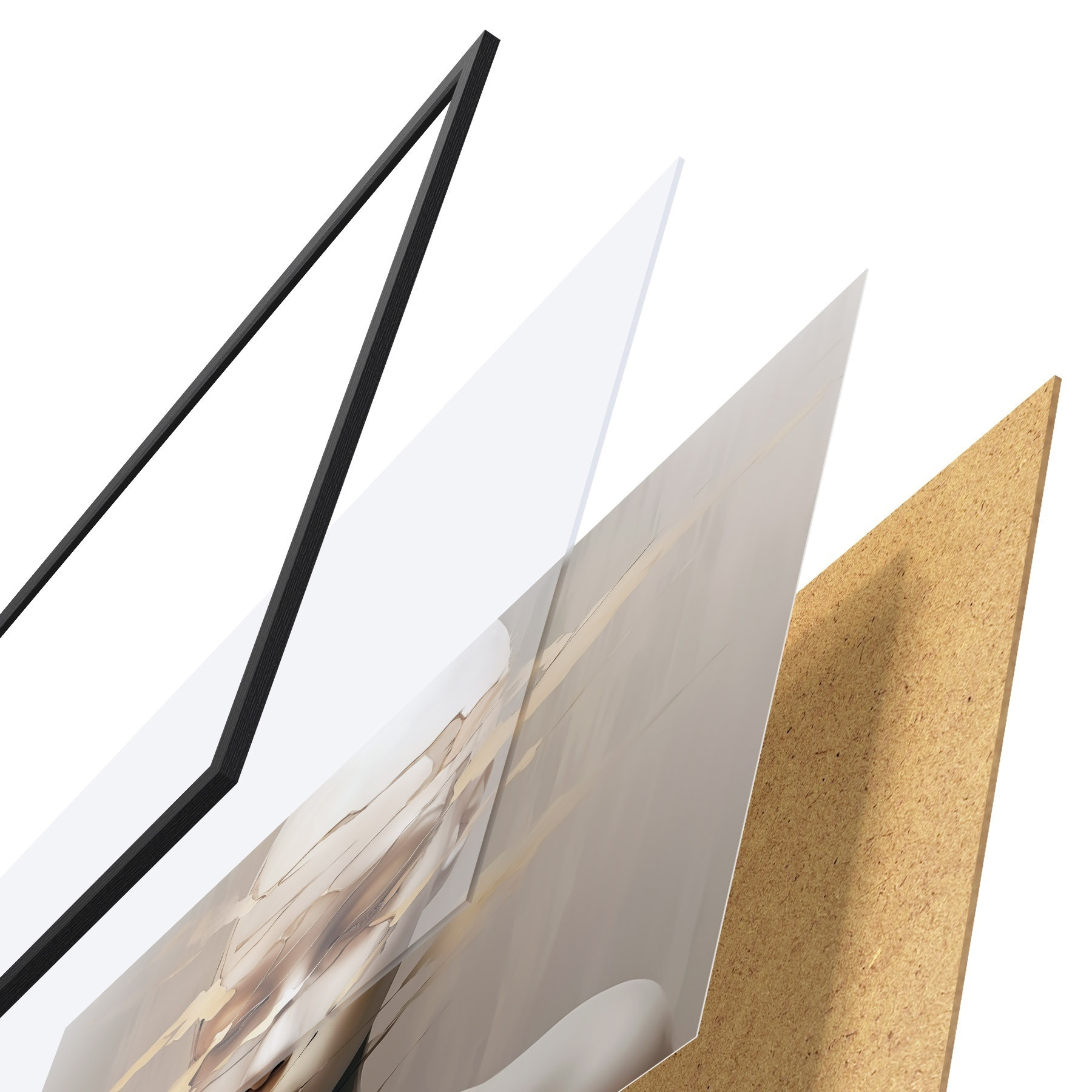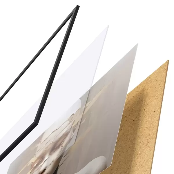 A poszter keretből, plexiből, nyomtatott képből és forgácslap hátlapból áll. A poszter a hátoldalon található rögzítőknek köszönhetően azonnal felakasztható a falra.
