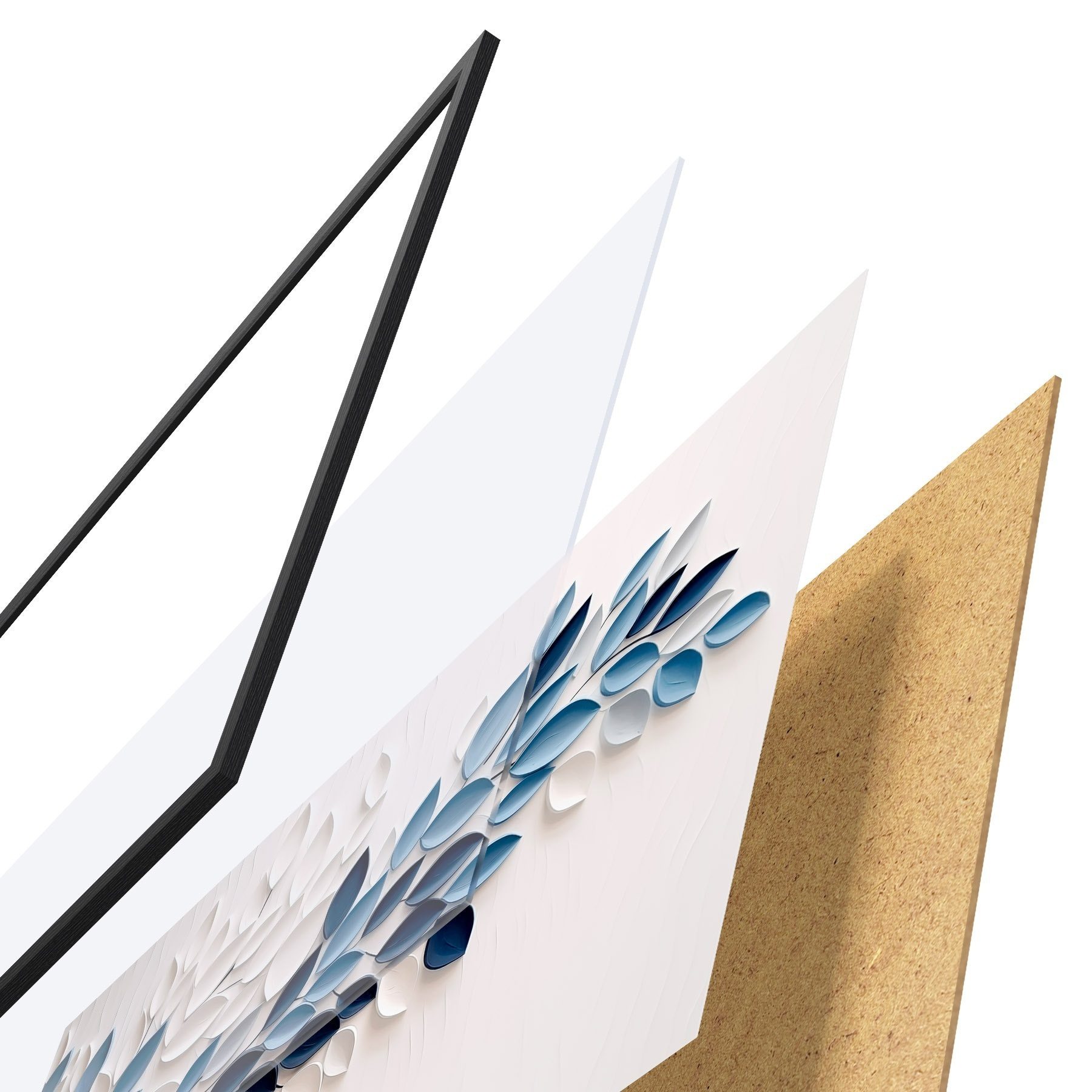 A poszter keretből, plexiből, nyomtatott képből és forgácslap hátlapból áll. A poszter a hátoldalon található rögzítőknek köszönhetően azonnal felakasztható a falra.