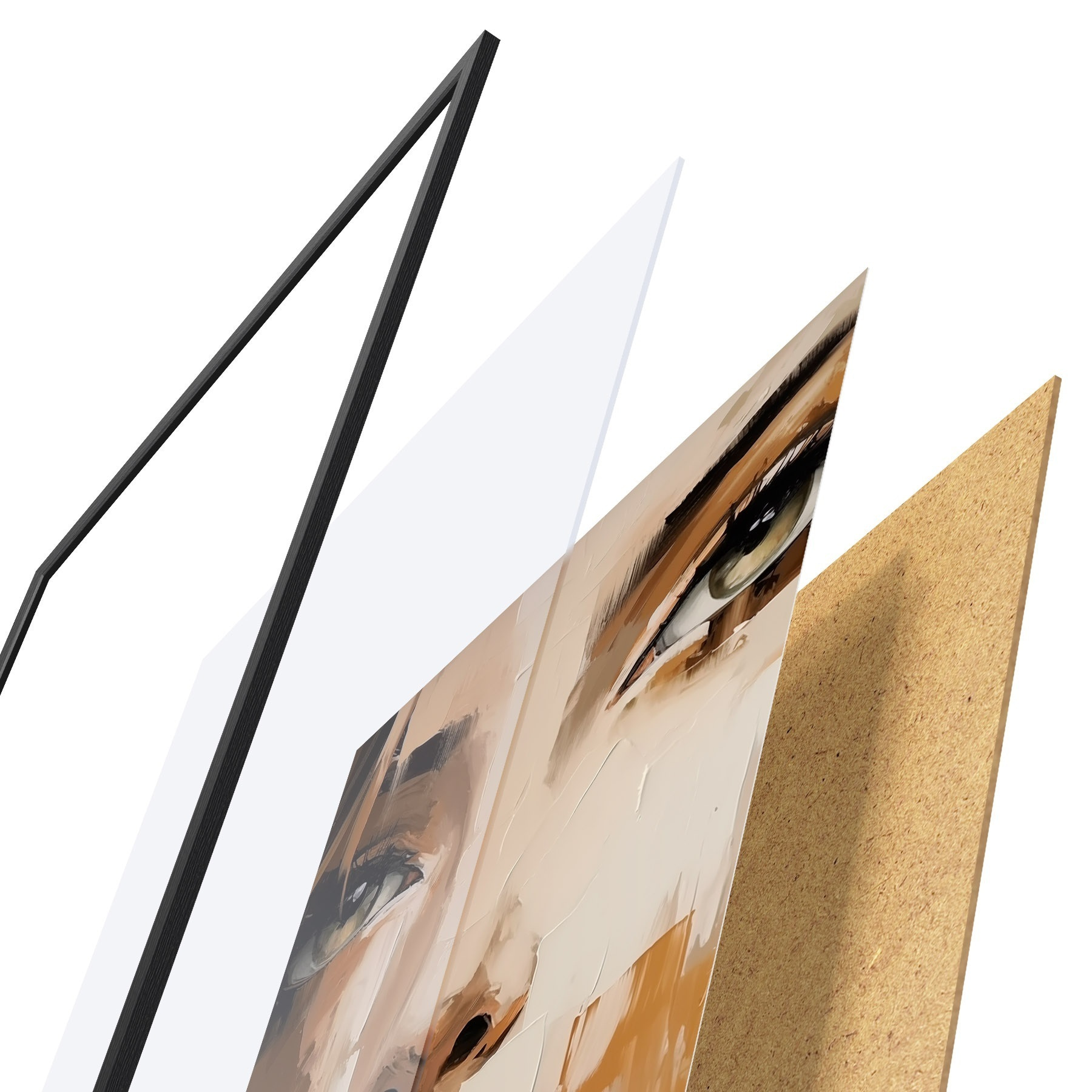 A poszter keretből, plexiből, nyomtatott képből és forgácslap hátlapból áll. A poszter a hátoldalon található rögzítőknek köszönhetően azonnal felakasztható a falra.