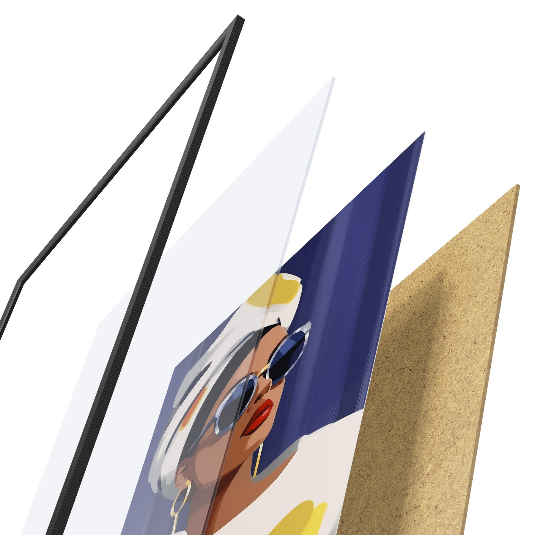 A poszter keretből, plexiből, nyomtatott képből és forgácslap hátlapból áll. A poszter a hátoldalon található rögzítőknek köszönhetően azonnal felakasztható a falra.
