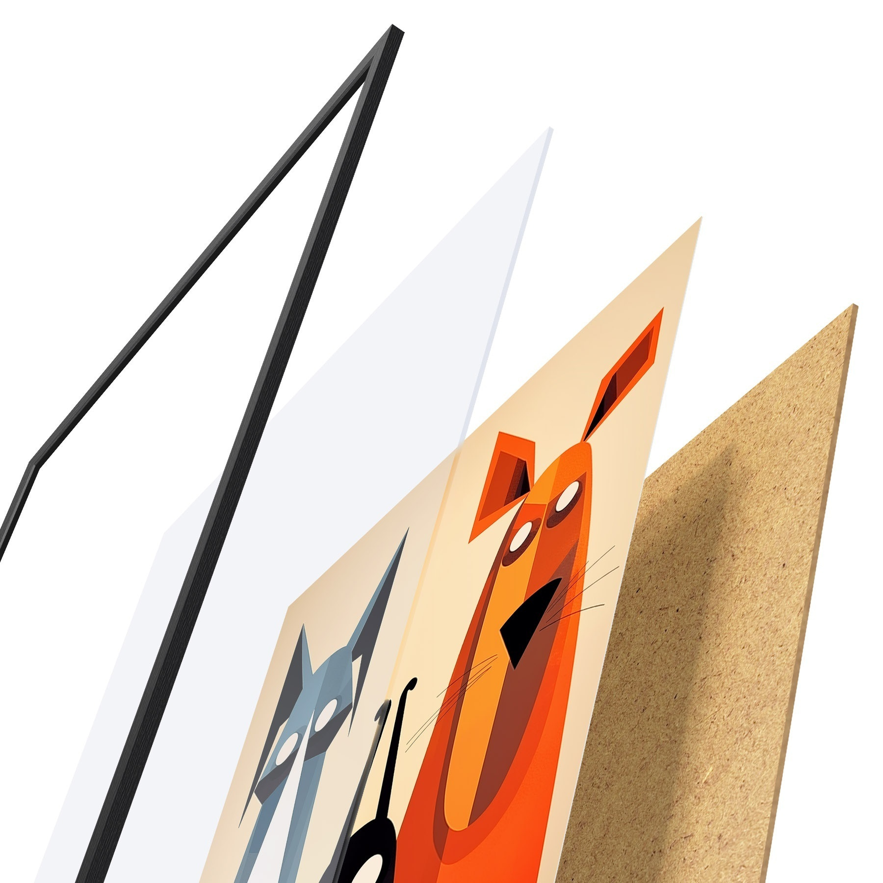A poszter keretből, plexiből, nyomtatott képből és forgácslap hátlapból áll. A poszter a hátoldalon található rögzítőknek köszönhetően azonnal felakasztható a falra.