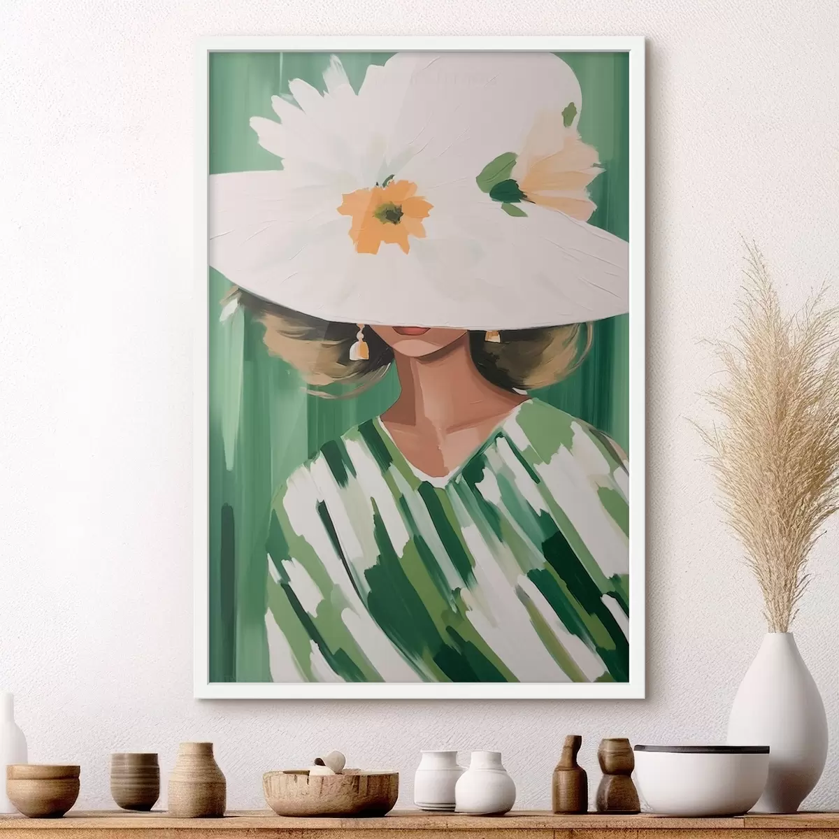Plakát a sziklán Kalapos nő virágokkal f46240