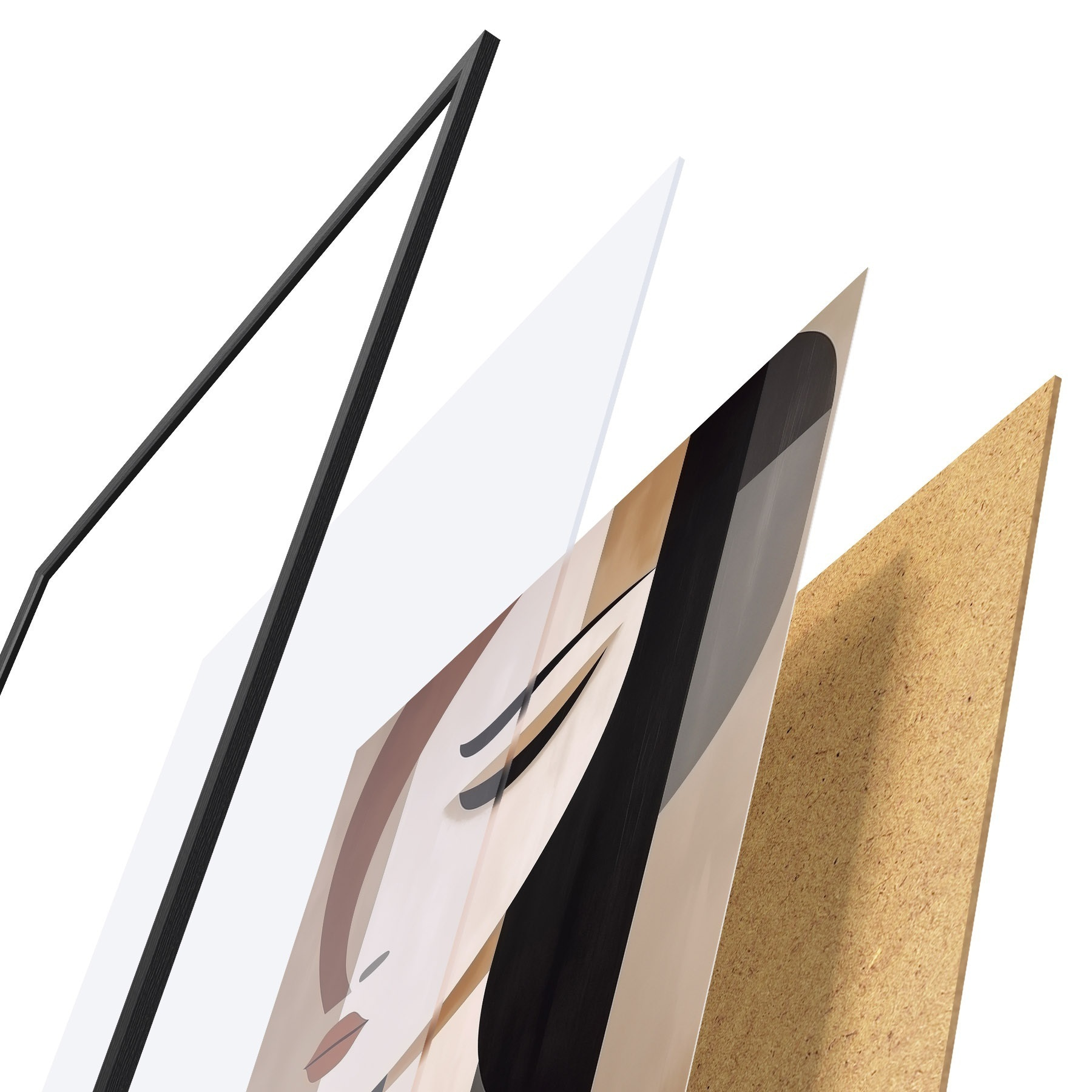 A poszter keretből, plexiből, nyomtatott képből és forgácslap hátlapból áll. A poszter a hátoldalon található rögzítőknek köszönhetően azonnal felakasztható a falra.