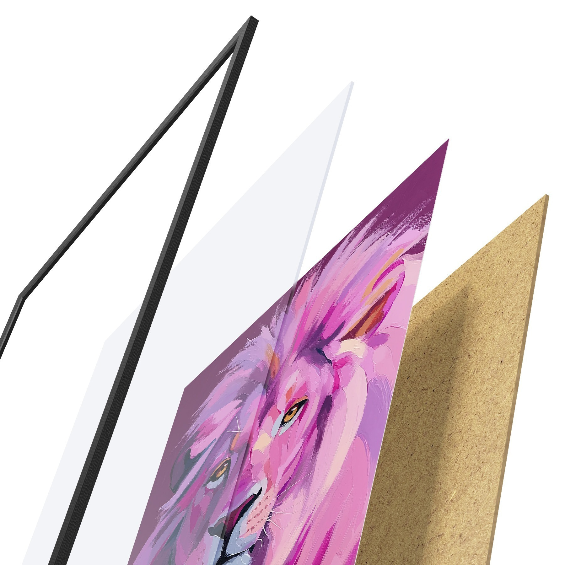 A poszter keretből, plexiből, nyomtatott képből és forgácslap hátlapból áll. A poszter a hátoldalon található rögzítőknek köszönhetően azonnal felakasztható a falra.
