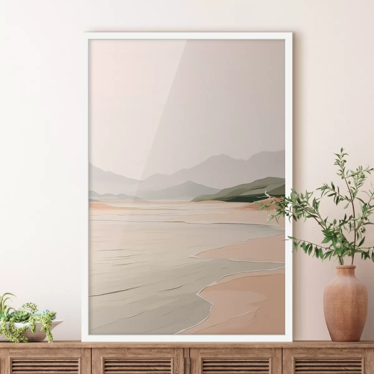 Poster Minimalista táj hegyekkel és parttal Nr f46248