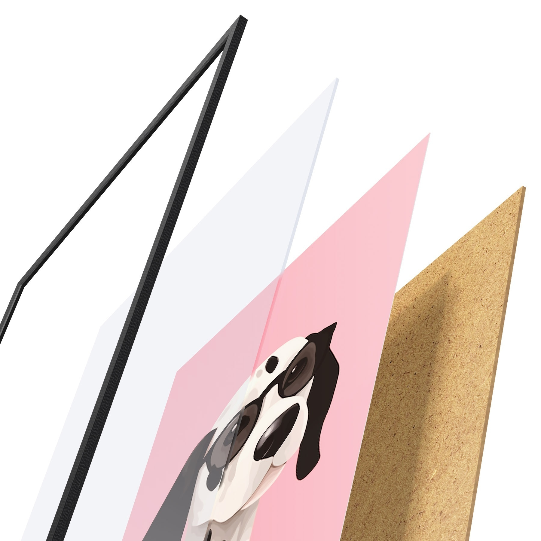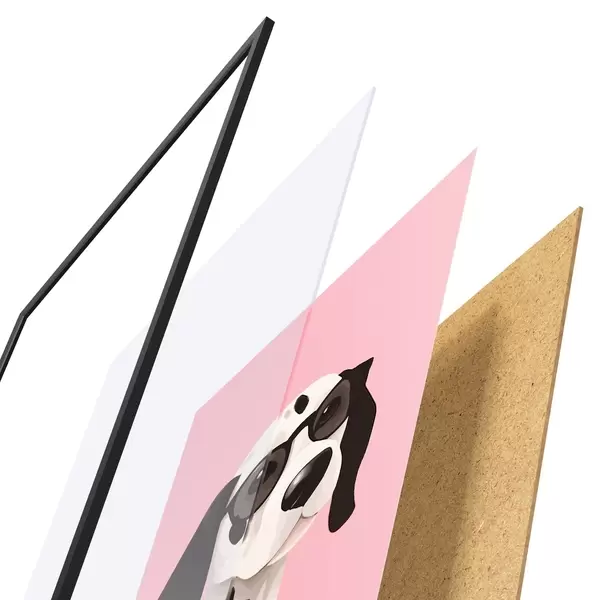 A poszter keretből, plexiből, nyomtatott képből és forgácslap hátlapból áll. A poszter a hátoldalon található rögzítőknek köszönhetően azonnal felakasztható a falra.