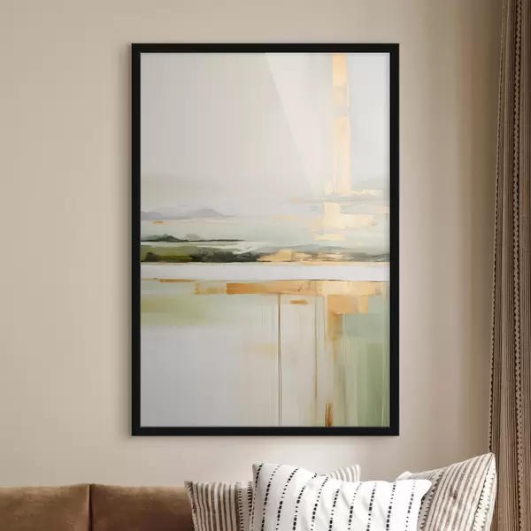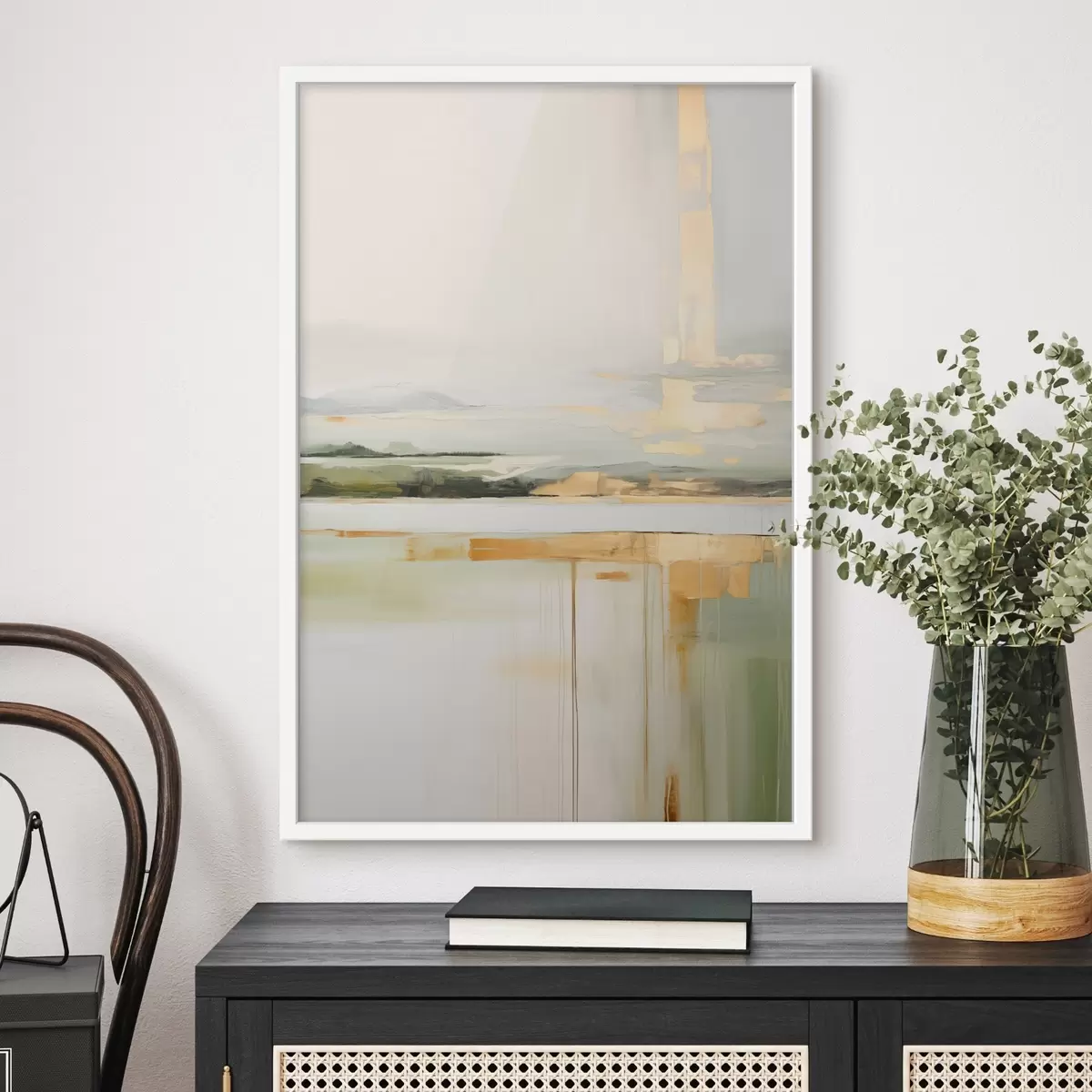 Poster Absztrakt táj sárga akcentussal, minimalista kompozíció földből, vízből és égből, tompított színekkel Nr f46268
