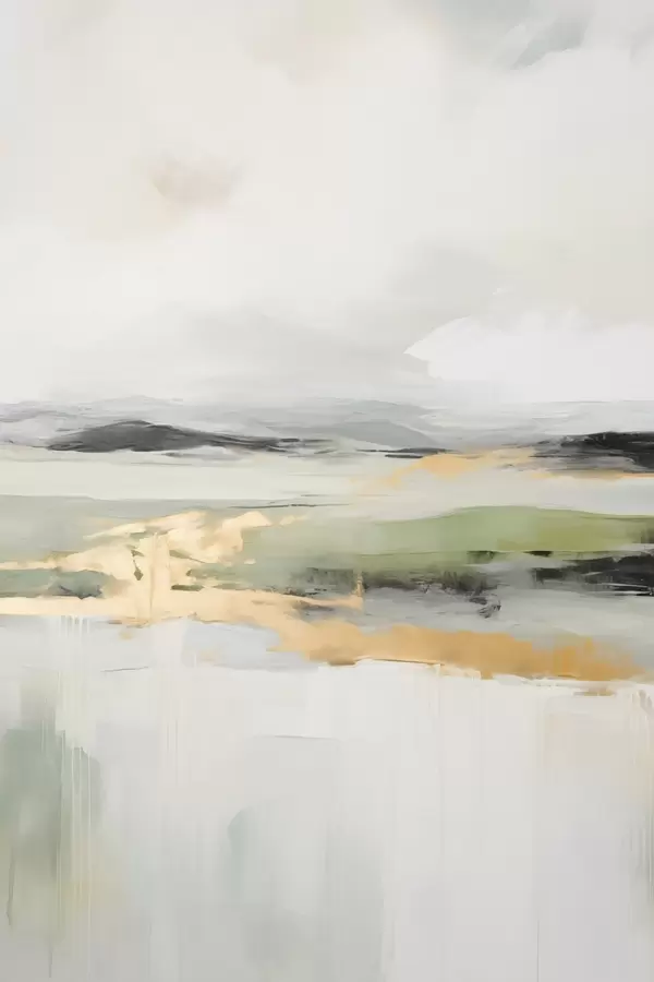 Poster Absztrakt táj sárga akcentussal, minimalista kompozíció földből, vízből és égből, tompított színekkel Nr f46269