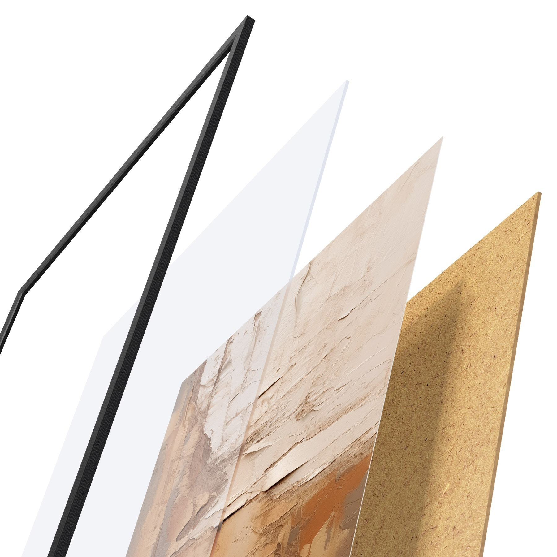 A poszter keretből, plexiből, nyomtatott képből és forgácslap hátlapból áll. A poszter a hátoldalon található rögzítőknek köszönhetően azonnal felakasztható a falra.