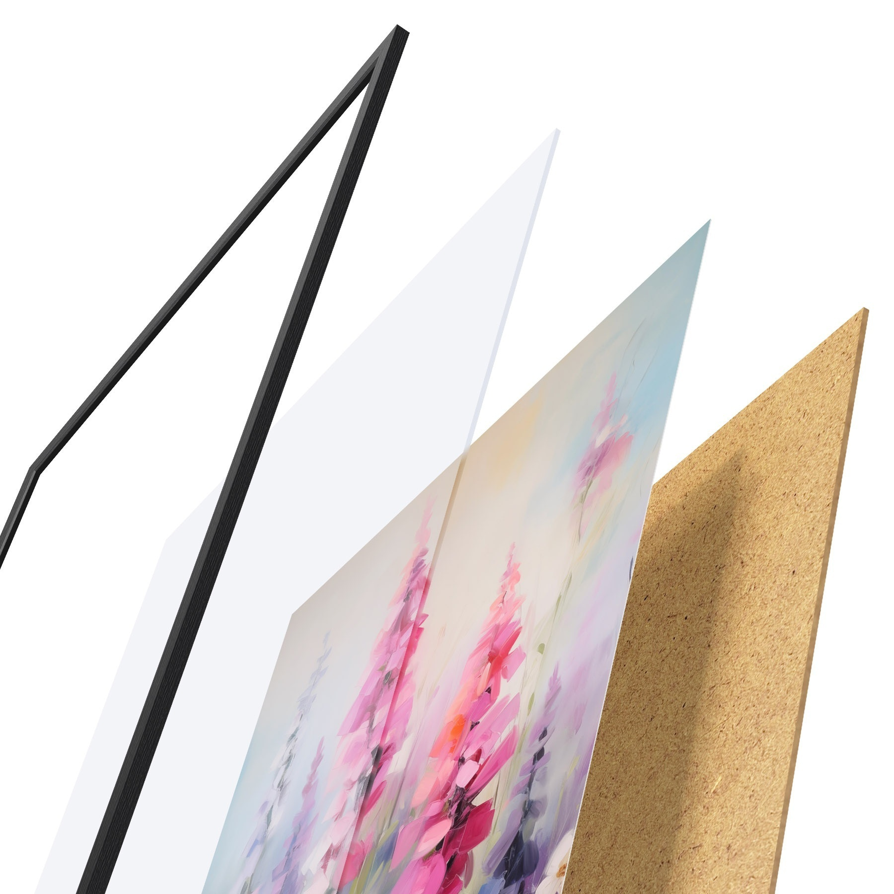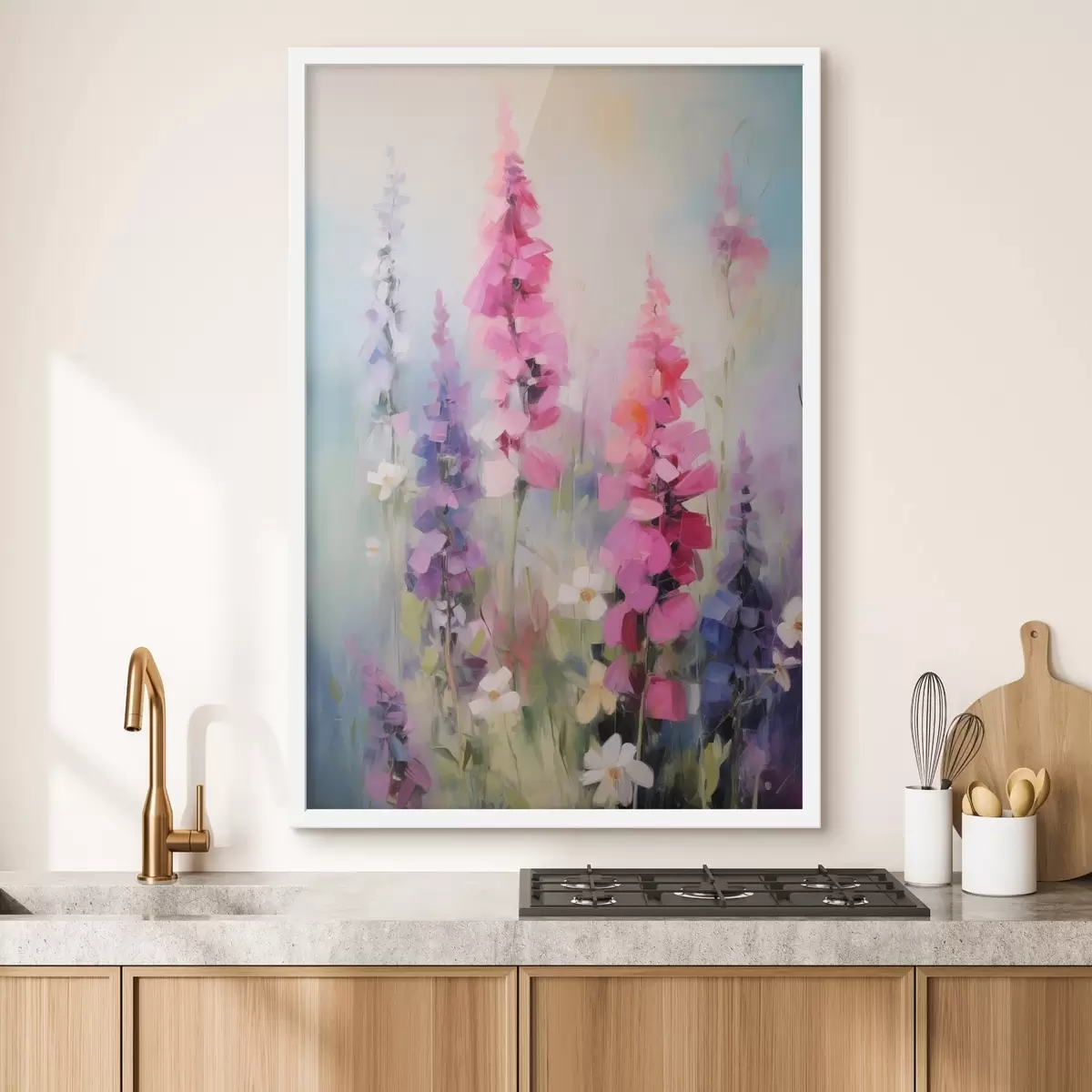 Poster Rózsaszín és lila virágok fehér margarétákkal egy mezőn, lágy ecsetvonások, pasztell színek, impresszionista stílus Nr f46279