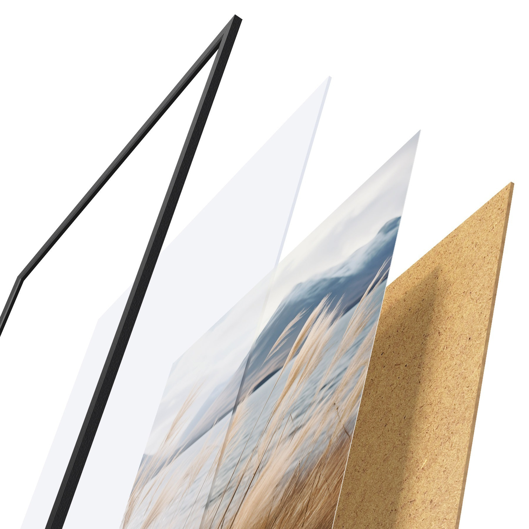 A poszter keretből, plexiből, nyomtatott képből és forgácslap hátlapból áll. A poszter a hátoldalon található rögzítőknek köszönhetően azonnal felakasztható a falra.