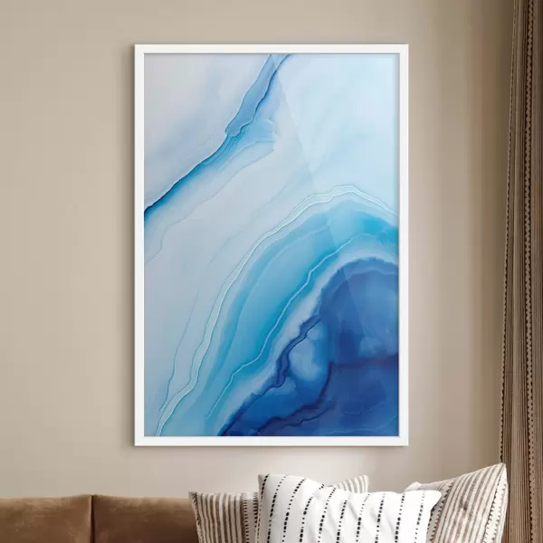 Poster Absztrakt kék-fehér achátminta, kavargó vonalak és színátmenetek, sima textúra, modern művészet, minimalista Nr f46290