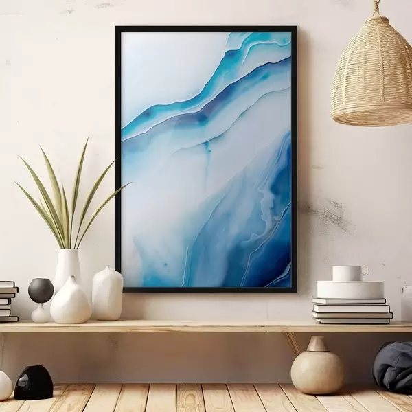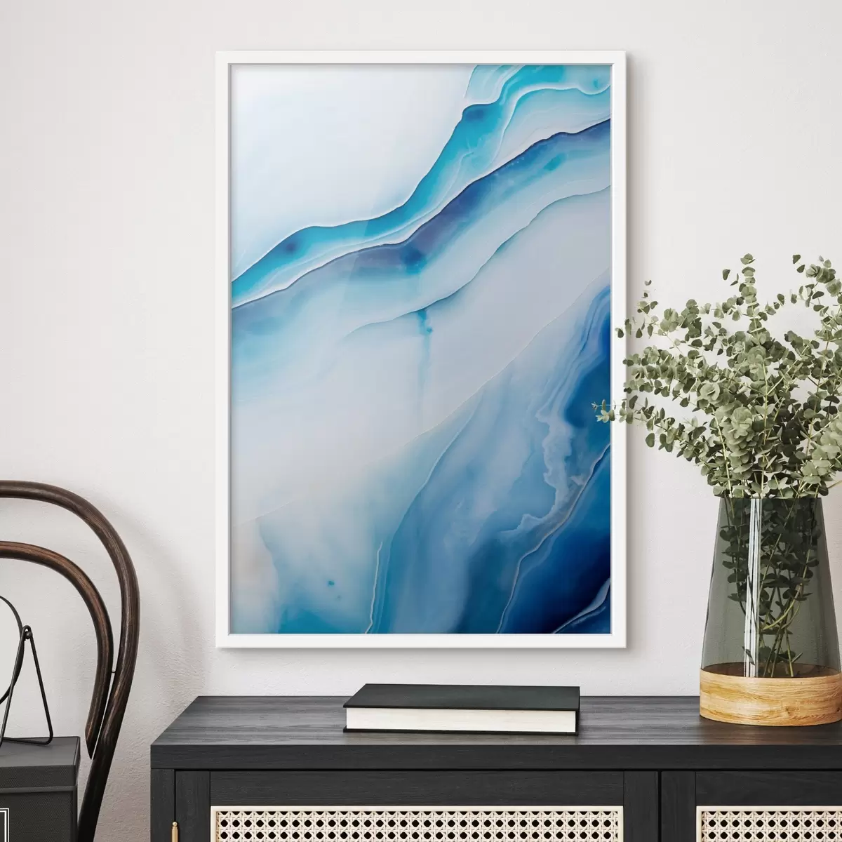 Poster Absztrakt kék-fehér achátminta, kavargó vonalak és színátmenetek, sima textúra, modern művészet, minimalista Nr f46291