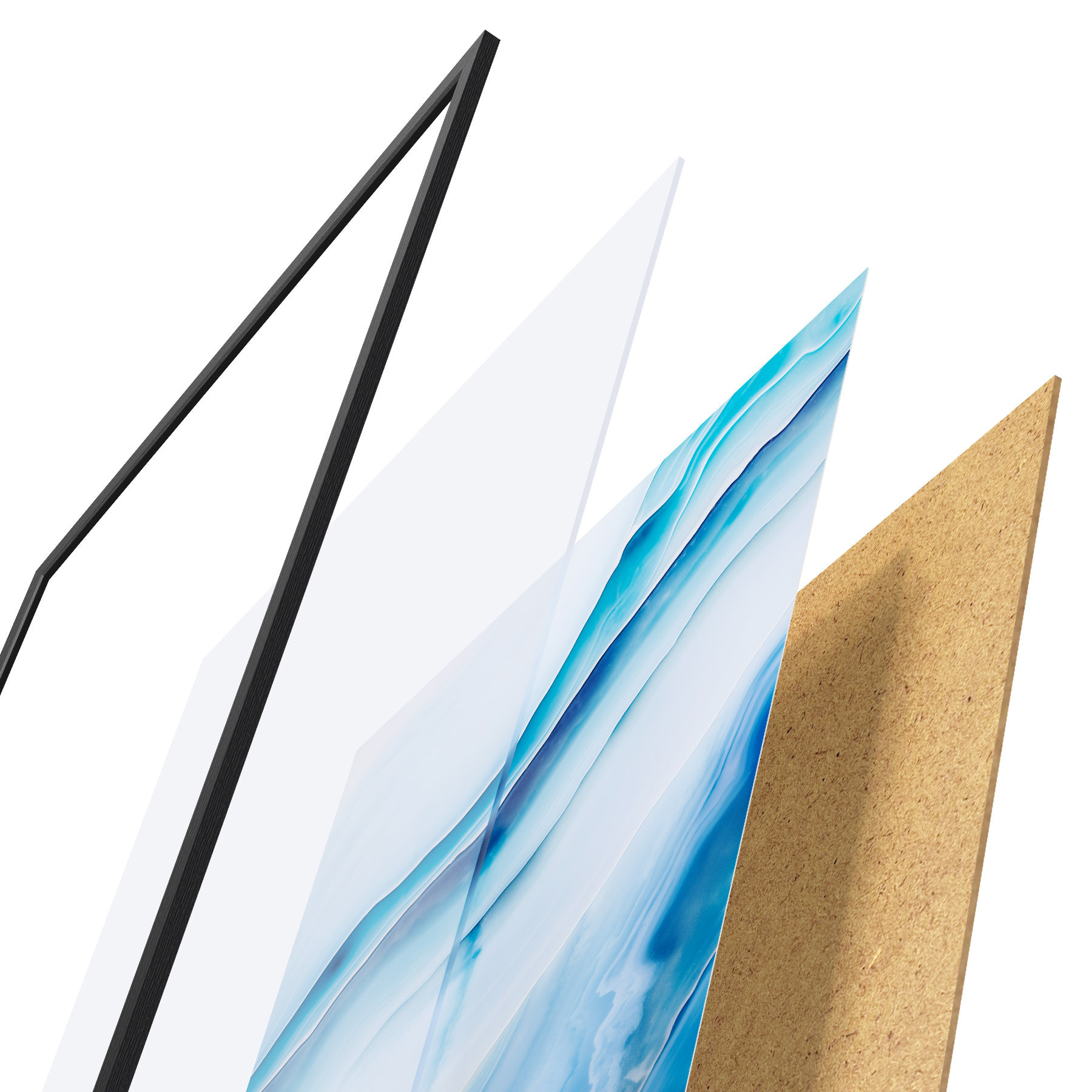 A poszter keretből, plexiből, nyomtatott képből és forgácslap hátlapból áll. A poszter a hátoldalon található rögzítőknek köszönhetően azonnal felakasztható a falra.