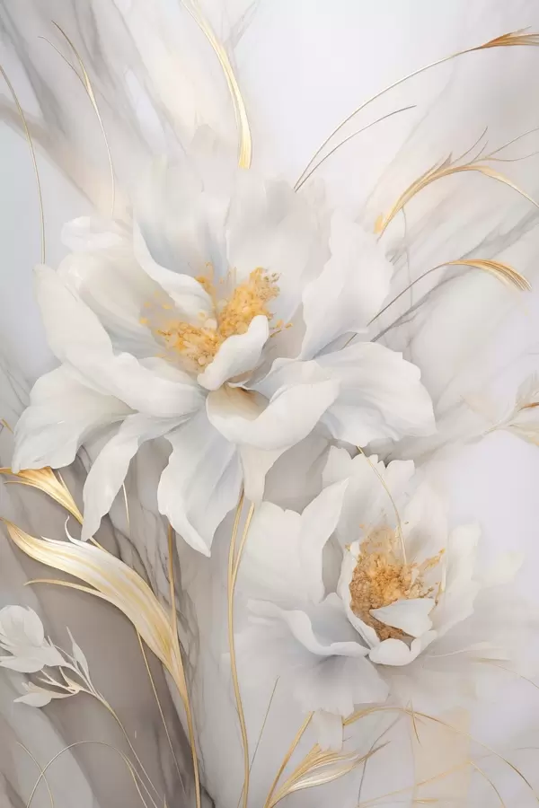Poster Fehér virágok sárga bibével és szárral, finom szirmokkal, elegáns kompozíció, semleges háttér Nr f46293